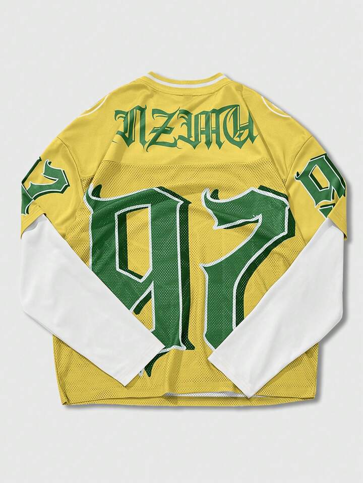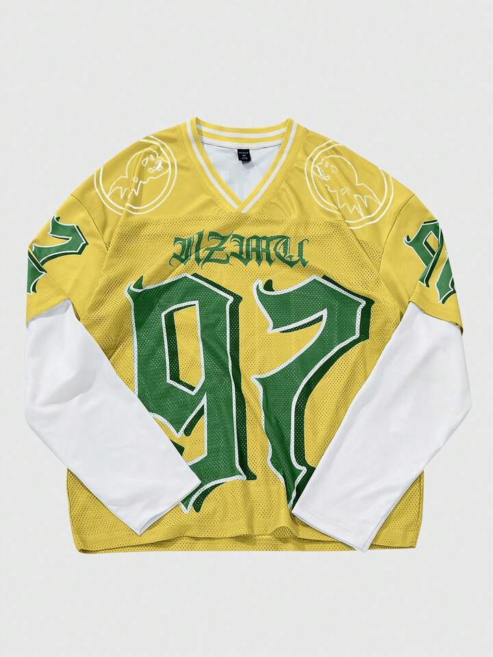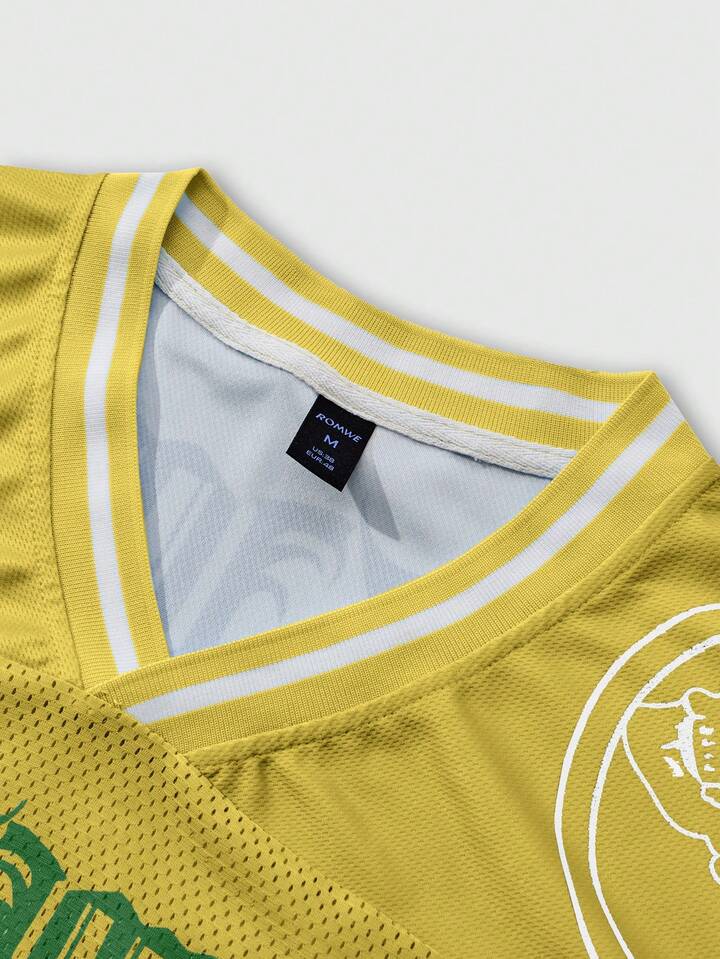 Men's Preppy V-Neck 97 Numeric Pattern Mesh T-Shirt