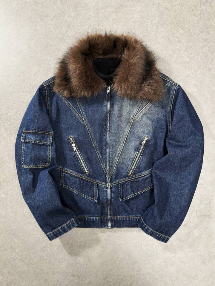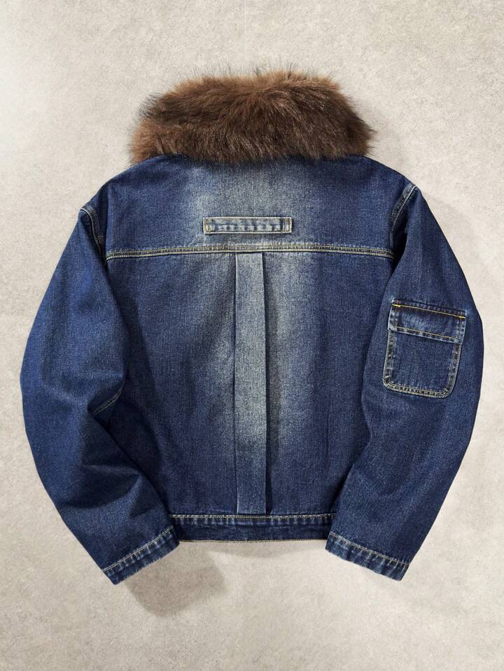 Men's Retro Style Fur Collar Long Sleeve Denim Jacket