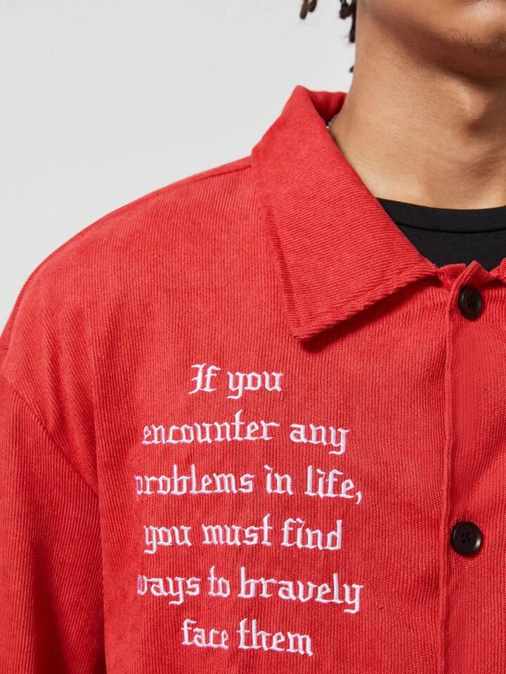 Men's Solid Color Front Button Long Sleeve Minimalistic Letter Print Casual Jacket