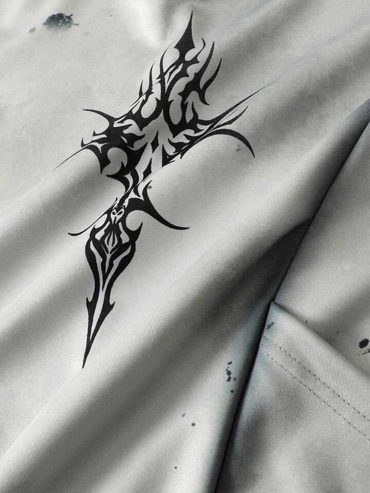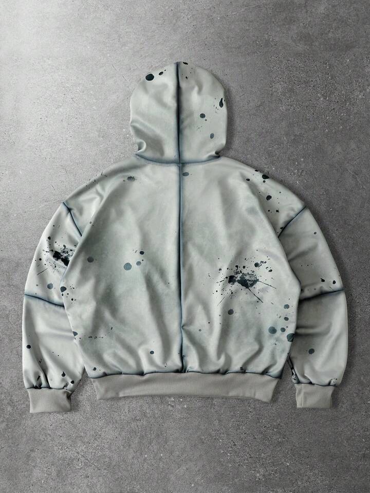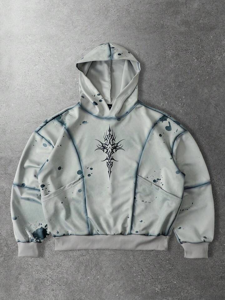 Men's Splatter Paint Distressed Patchwork Hoodie, Vintage Streetwear