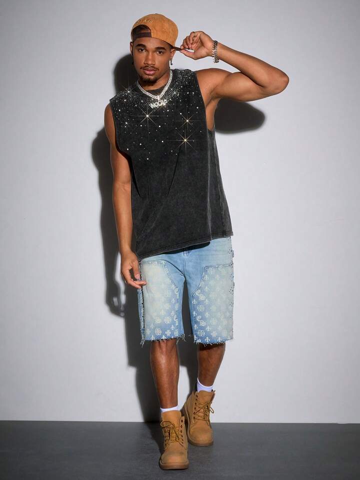 Men's Street Life Sparkling Diamond Wash Loose Fit Tank Top, Rave