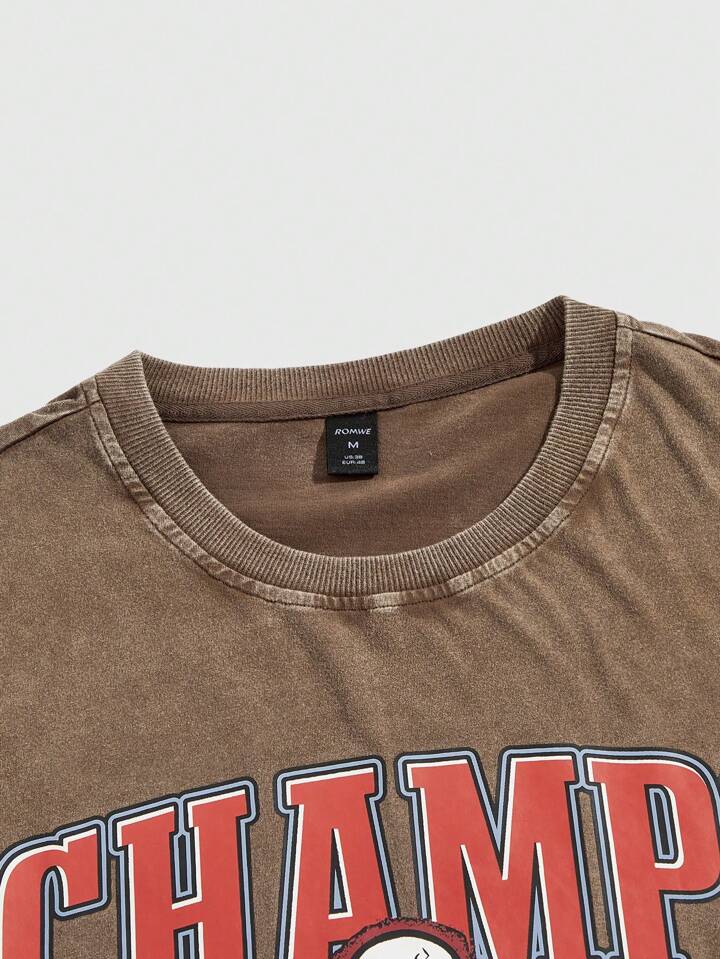 Men's Summer Casual Skull Printed Short Sleeve T-Shirt With Letter Print, Round Neck