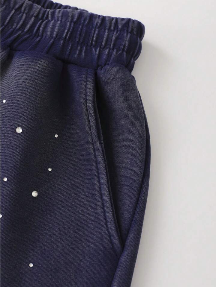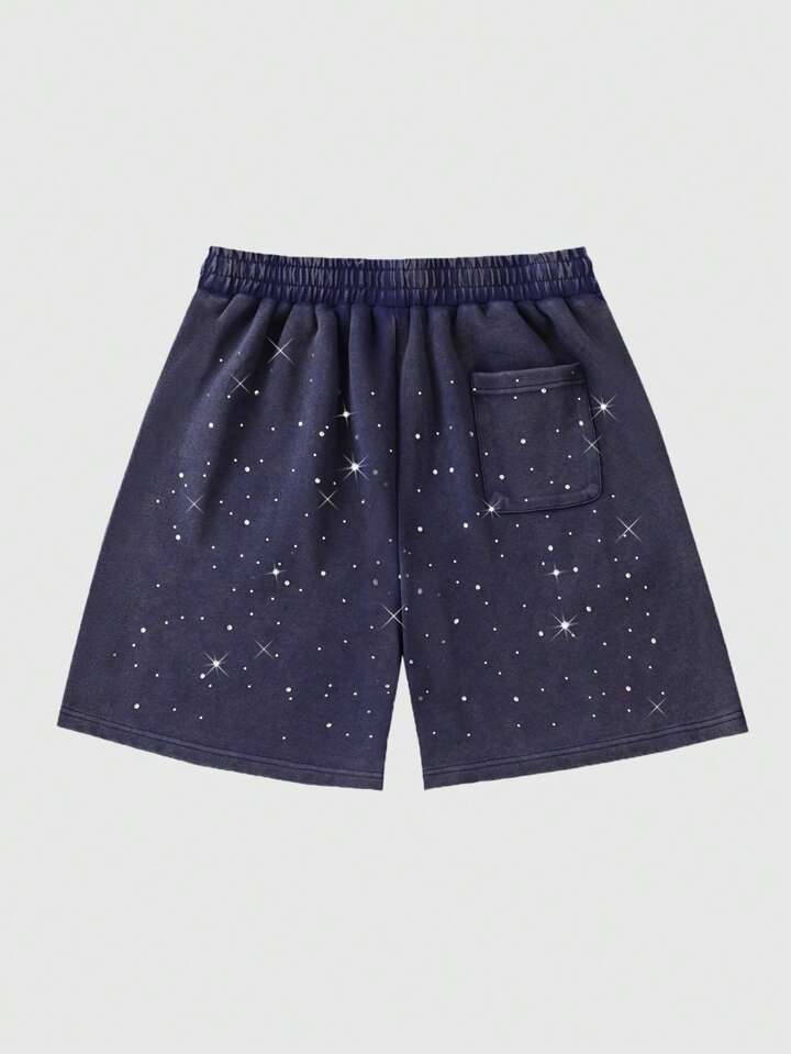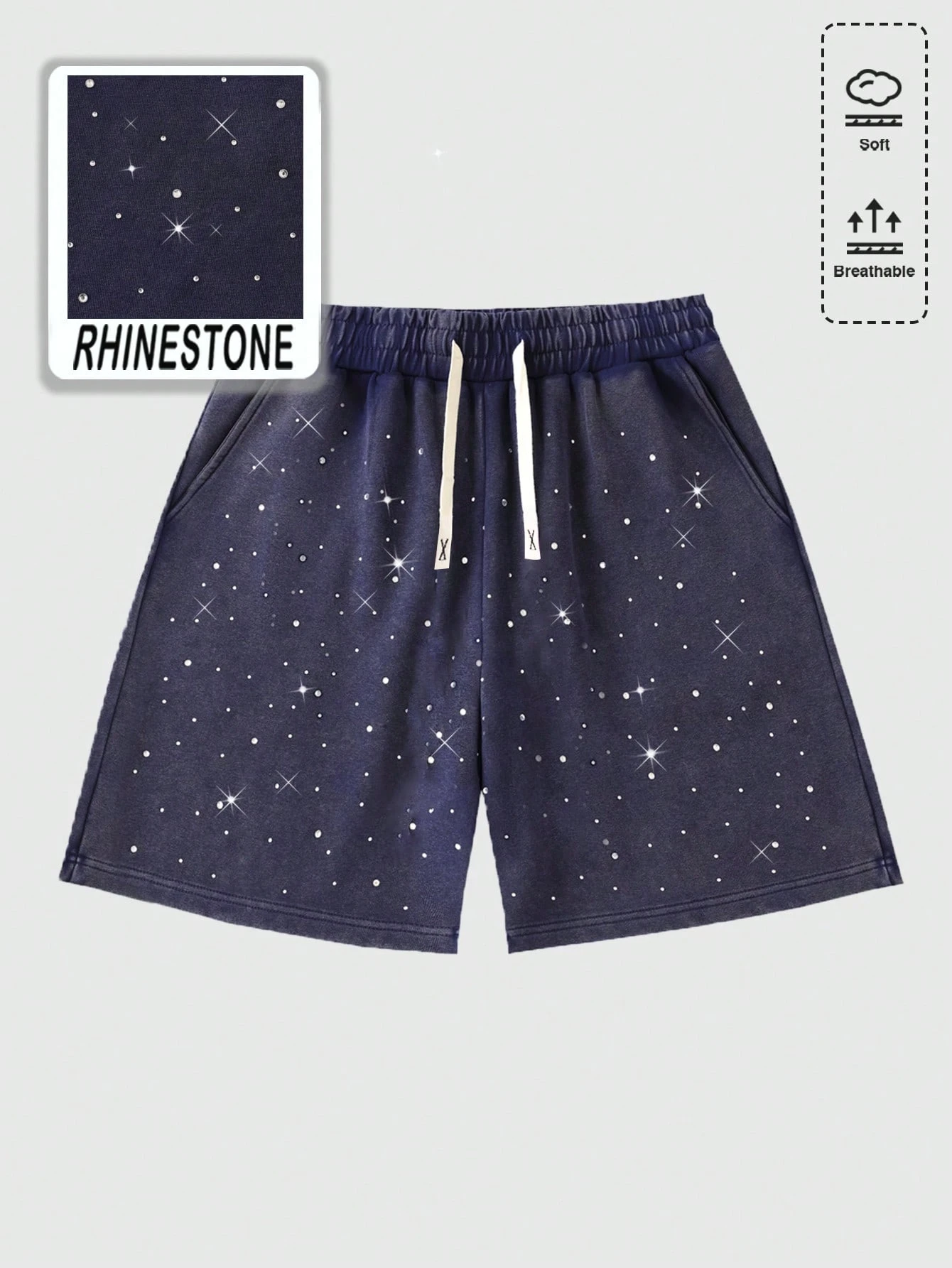 Men's Summer Casual Street Rhinestone Drawstring Waist Oblique Pocket Loose Shorts