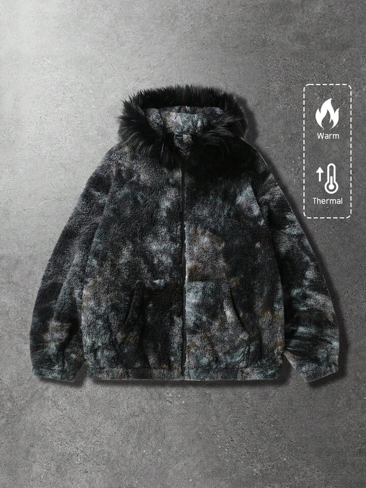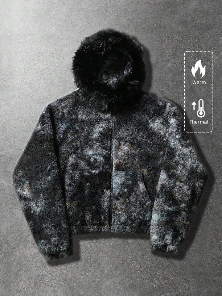 Men's Tie-Dye Hooded Jacket, Thermal Lined, Thickened For Autumn/Winter