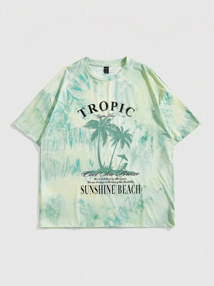 Men's Tie-Dye Print Round Neck Casual Short Sleeve T-Shirt For Beach, Vacation