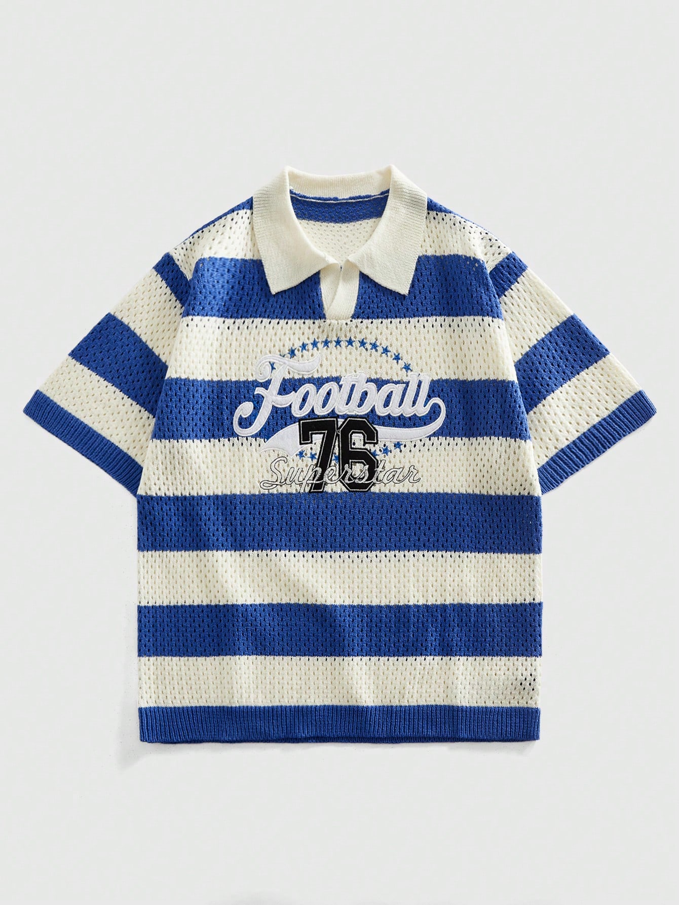 Men's Turndown Collar Embroidered Striped Knit Sweater