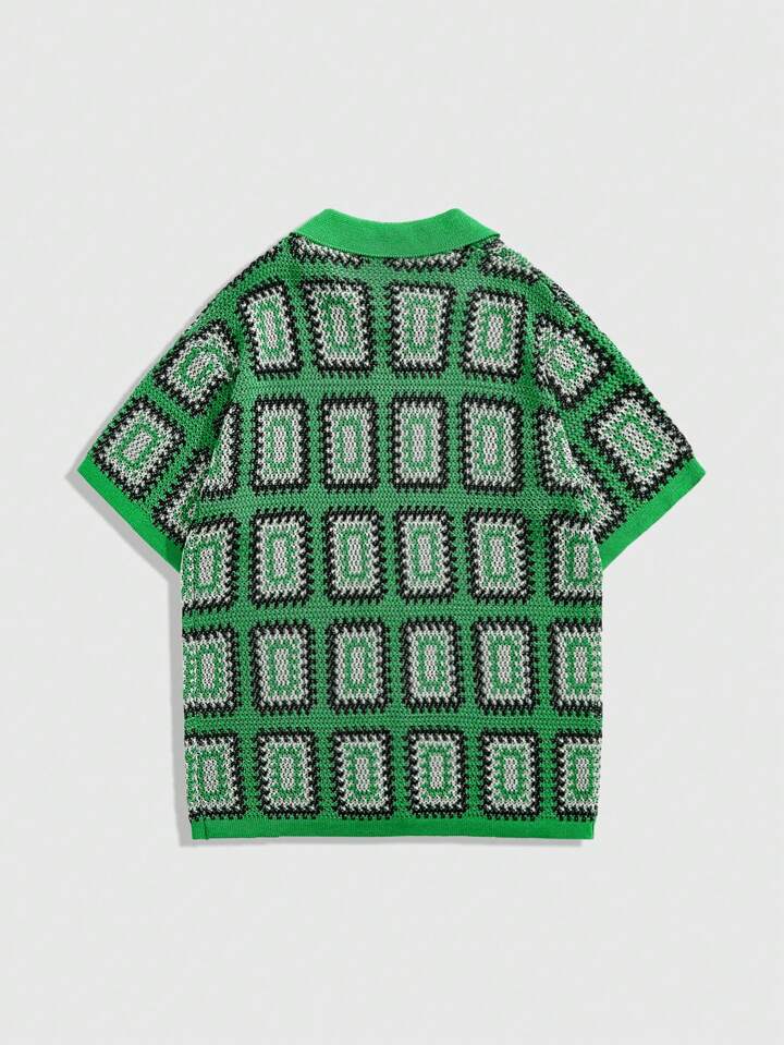 Men's Vacation Casual Contrast Color Geometric Print Short Sleeve Knit Top