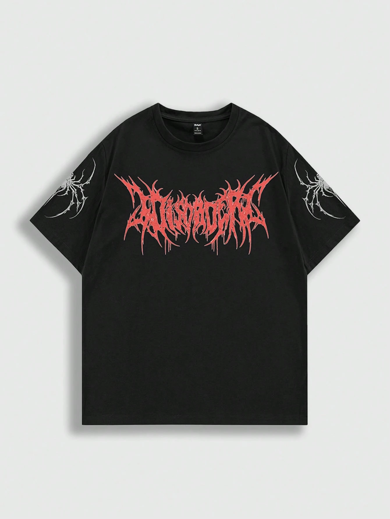 Men's Y2K Gothic Dark Print T-Shirt, Suitable For Everyday Wear, Spring/Summer