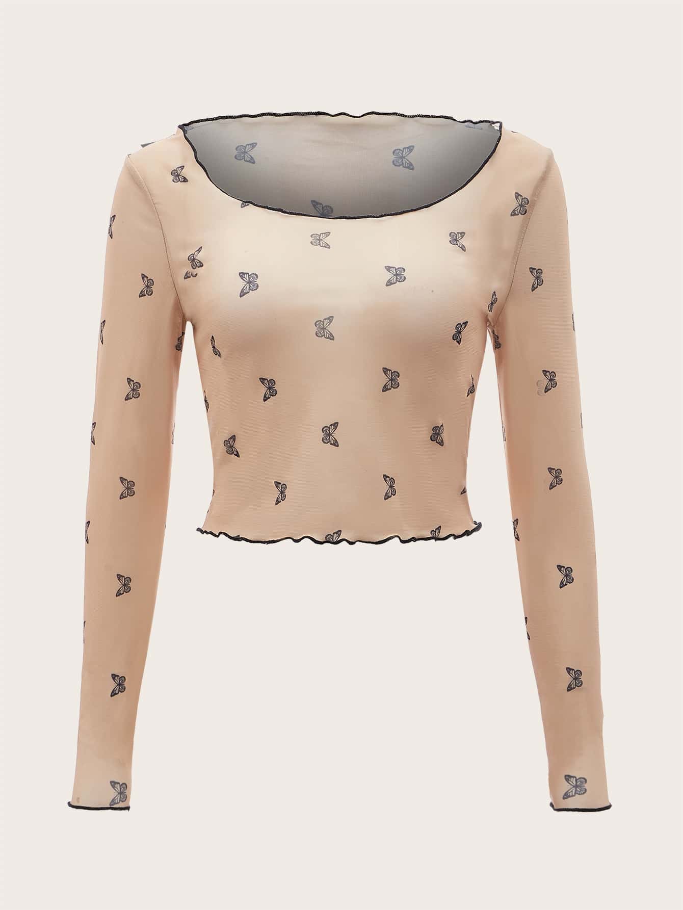 Mesh Butterfly Lettuce Trim Top