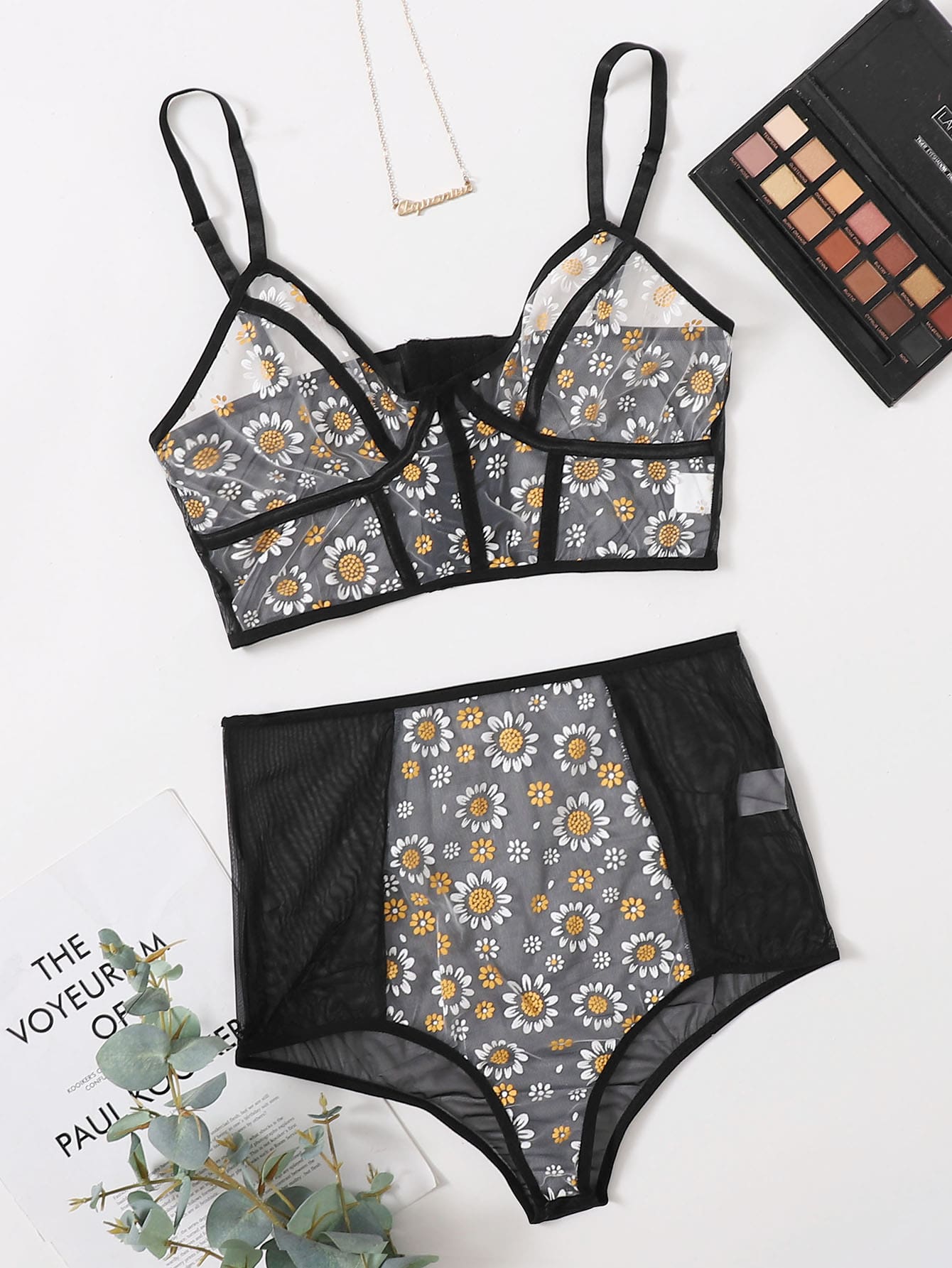 Mesh Floral Sheer Lingerie Set