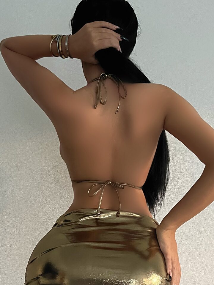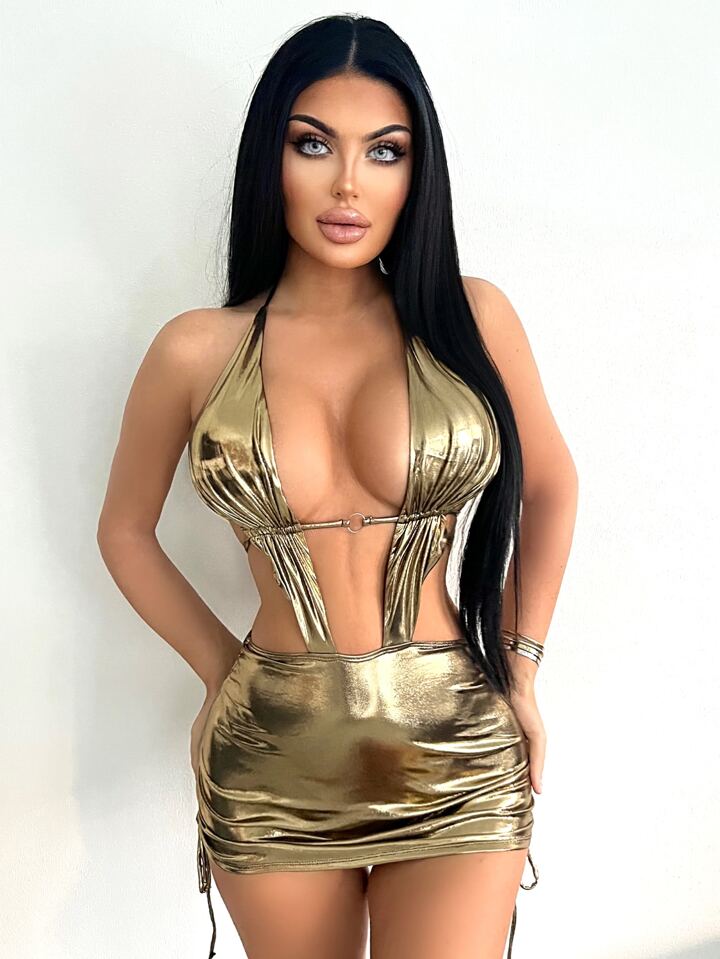 Metallic Bikini Set Halter Triangle O-ring Linked Swim Dress & Bikini 2 Piece Bathing Suit