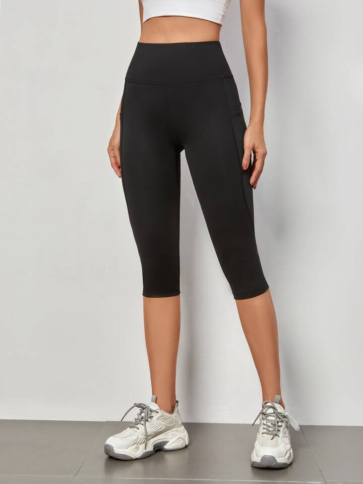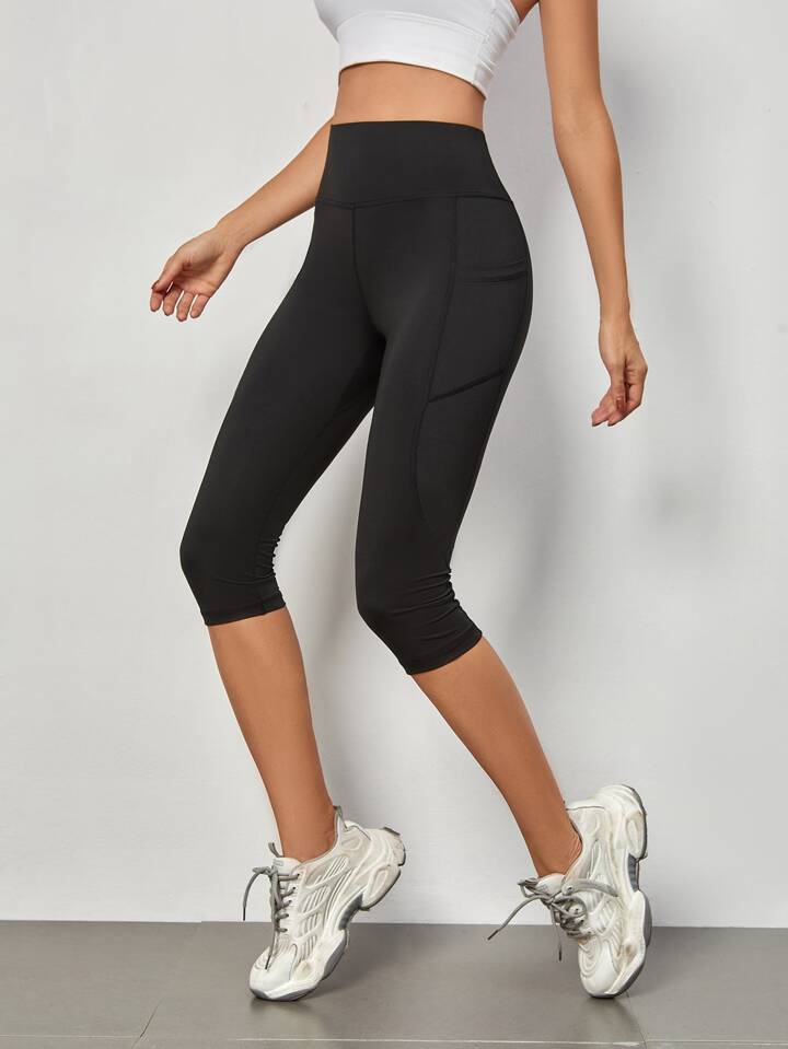 Mid-Calf Length Yoga Leggings Tummy Control Sports Leggings With Phone Pocket