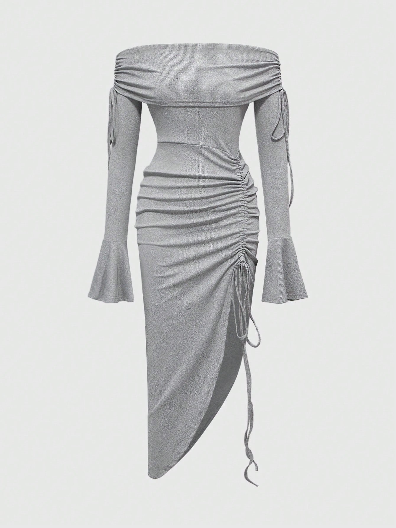 Millennium Vintage Off-Shoulder High Slit Sexy Bodycon Dress