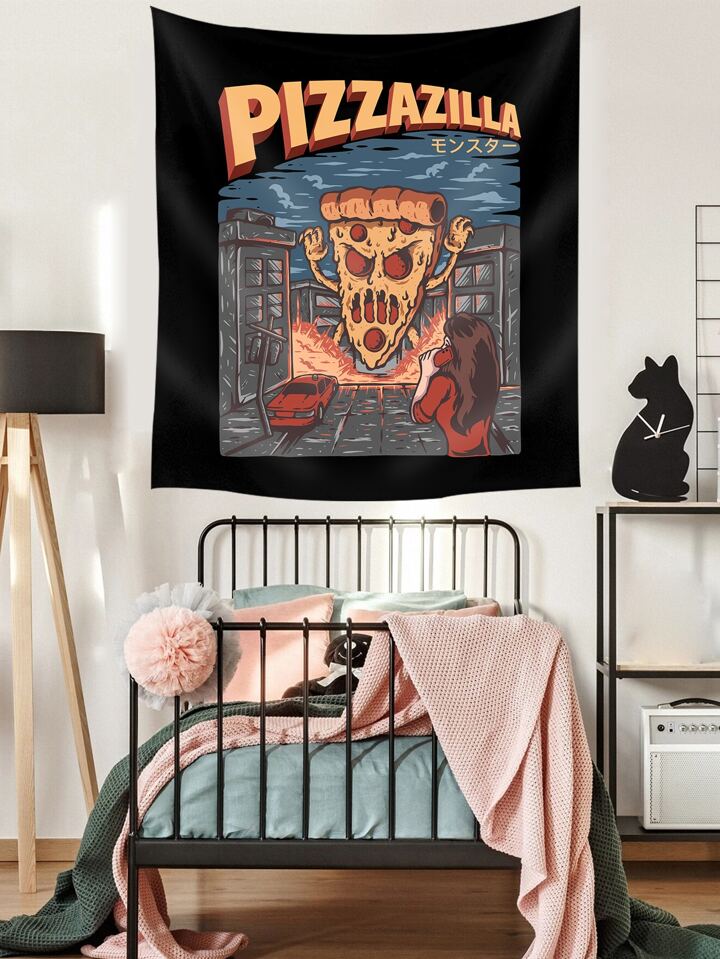 Movinkgraphic 1pc Slogan & Pizza Print Tapestry, Cartoon Fabric Food Print Hanging Blanket For Home