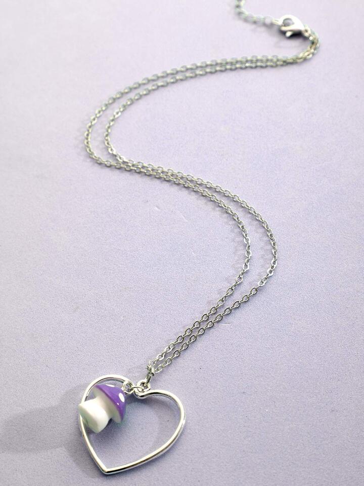Mushroom Decor Heart Pendant Necklace