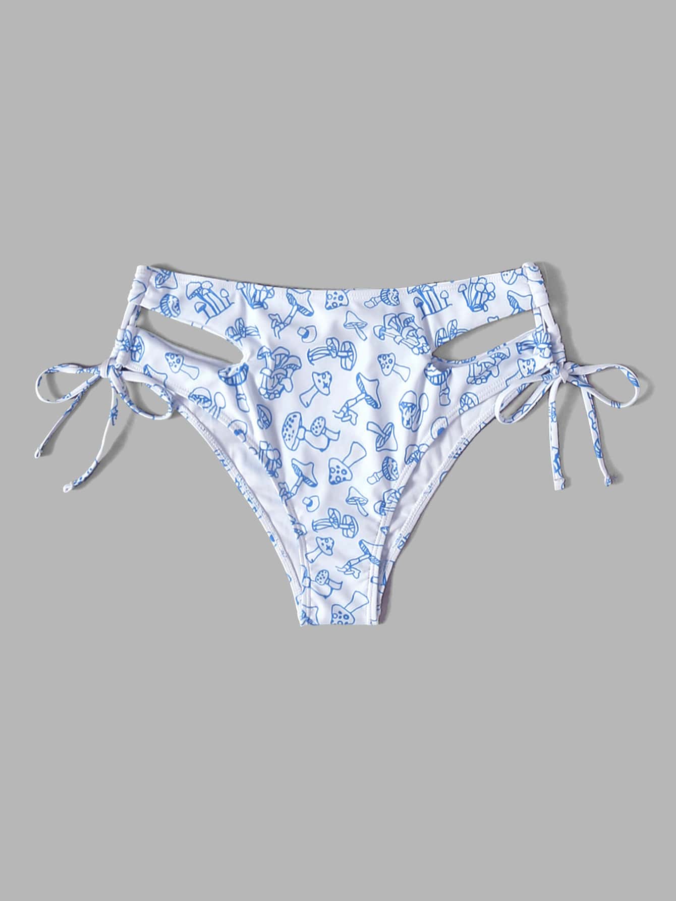 Mushroom Graphic Cut Out Knot Bikini Bottom