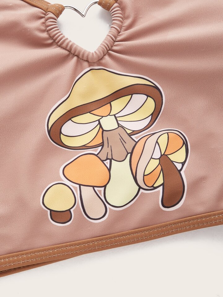 Mushroom Graphic Heart-ring Linked Tankini Top