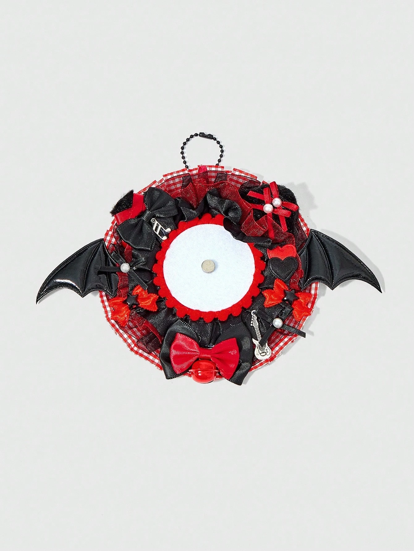 Music Note & Bat Wing Lace Trim Bag Charm, Handmade Kawaii Casual Fashion Anime Retro Aesthetic Brooch Badge Decor, Halloween