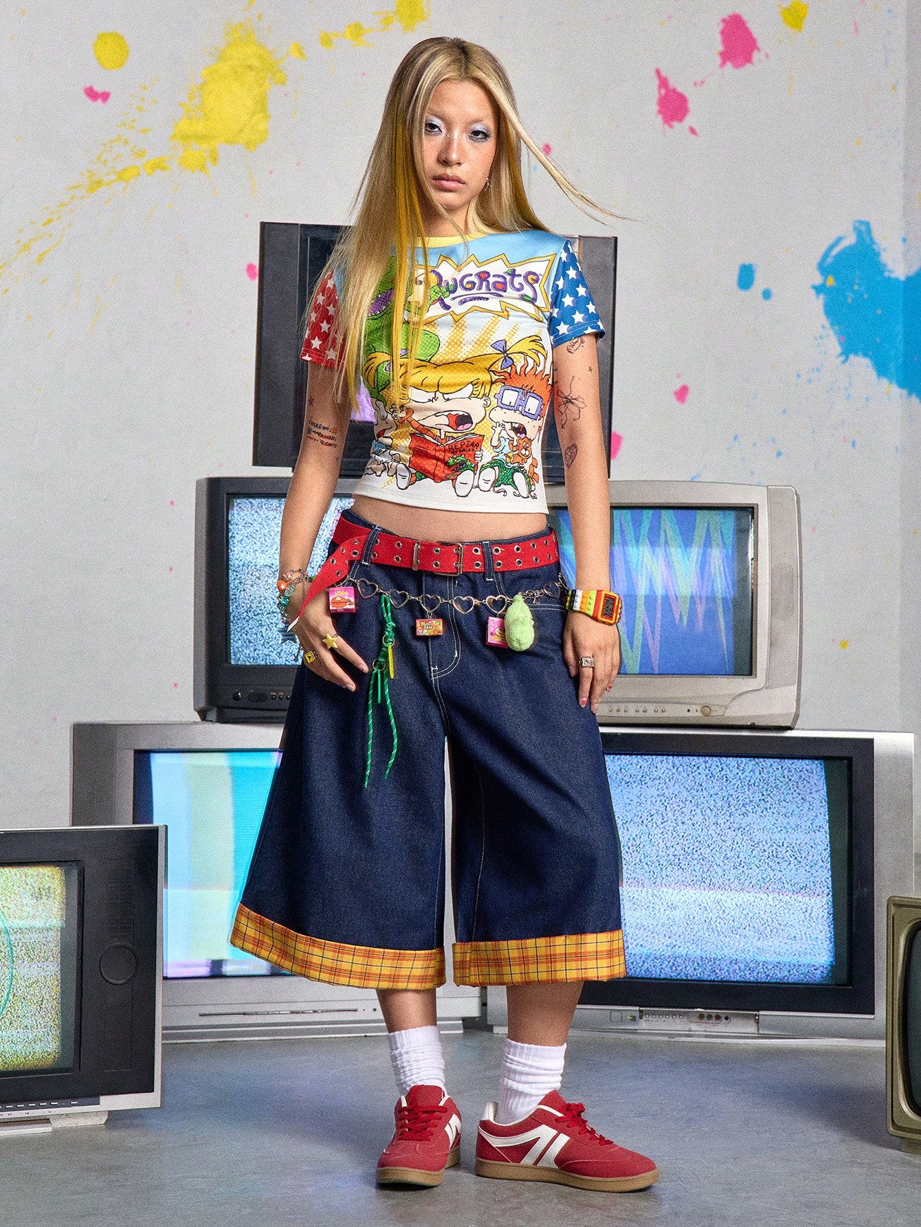 Nick 90's X ROMWE Women Star Pattern Colorblock T-Shirt With Tight Sleeves
