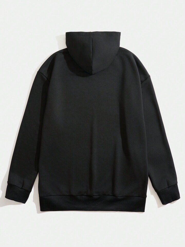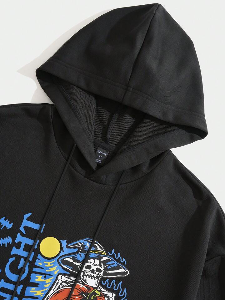 Nomouthh Guys Japanese Letter & Skull Graphic Drawstring Hoodie