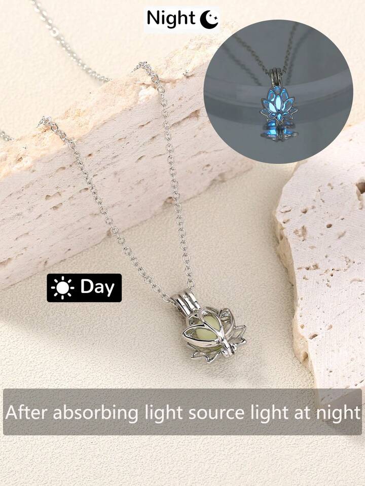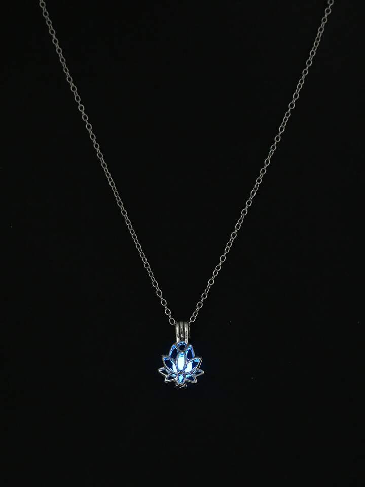 Nooxian Fashionable Creative Luminous DIY Lotus Shaped Pendant Necklace, Which Can Be Opened, Sky Blue Luminous, 1pc