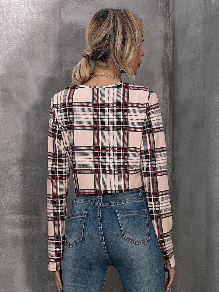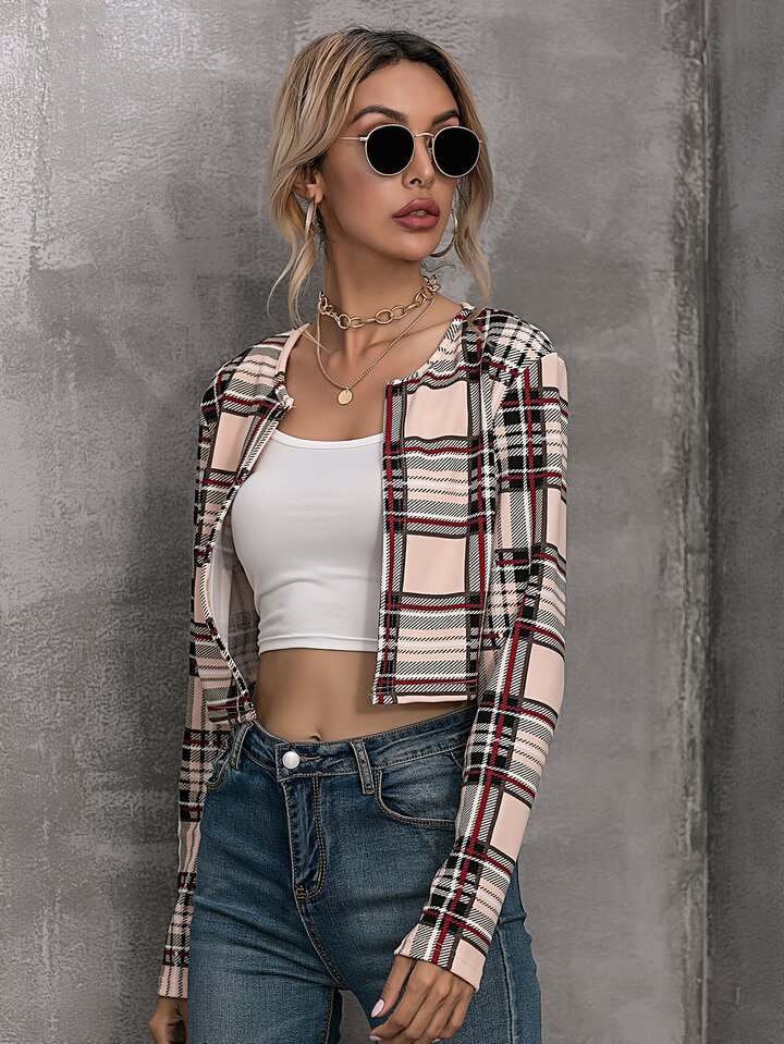 Open Front Plaid Crop Jacket