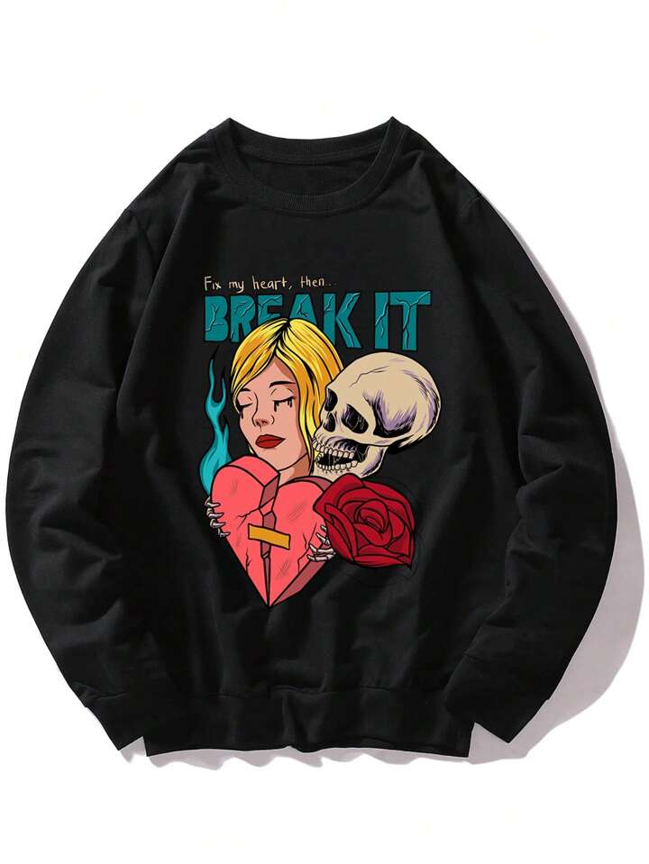 Otheridentity Guys Slogan & Figure Graphic Sweatshirt