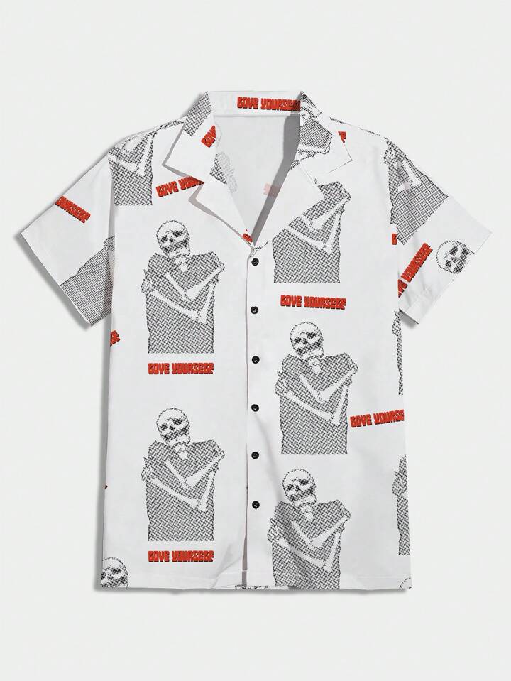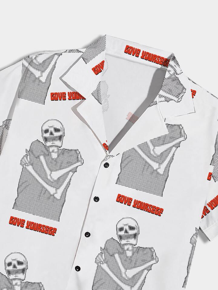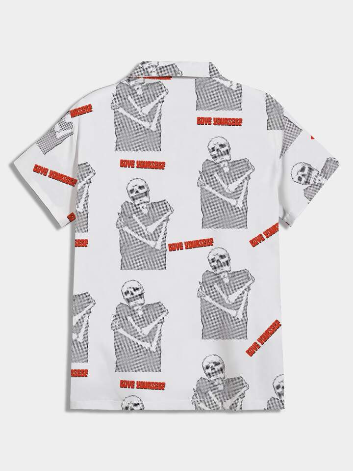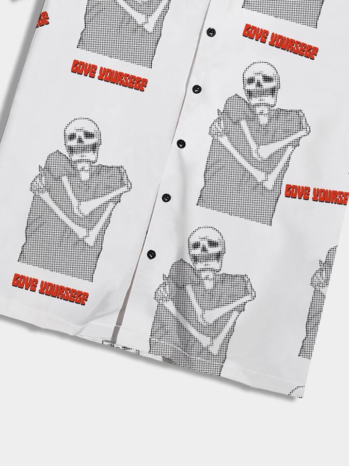 POMOi Guys Allover Skull Print Lapel Collar Shirt