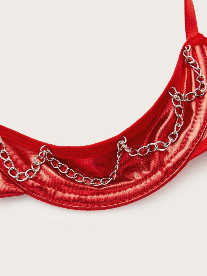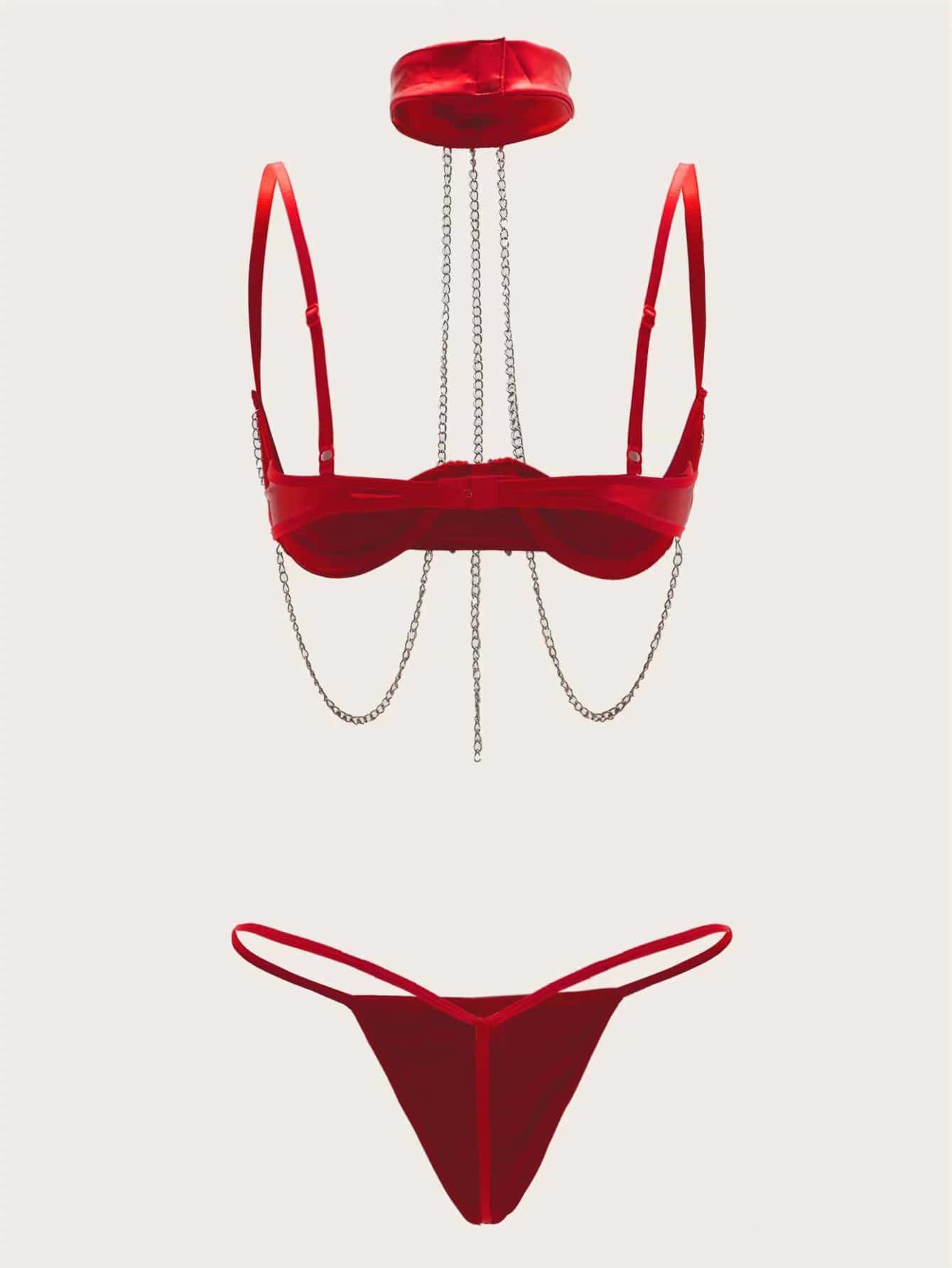 PU Underwire Choker Costume Set & 1pair Nipple Cover