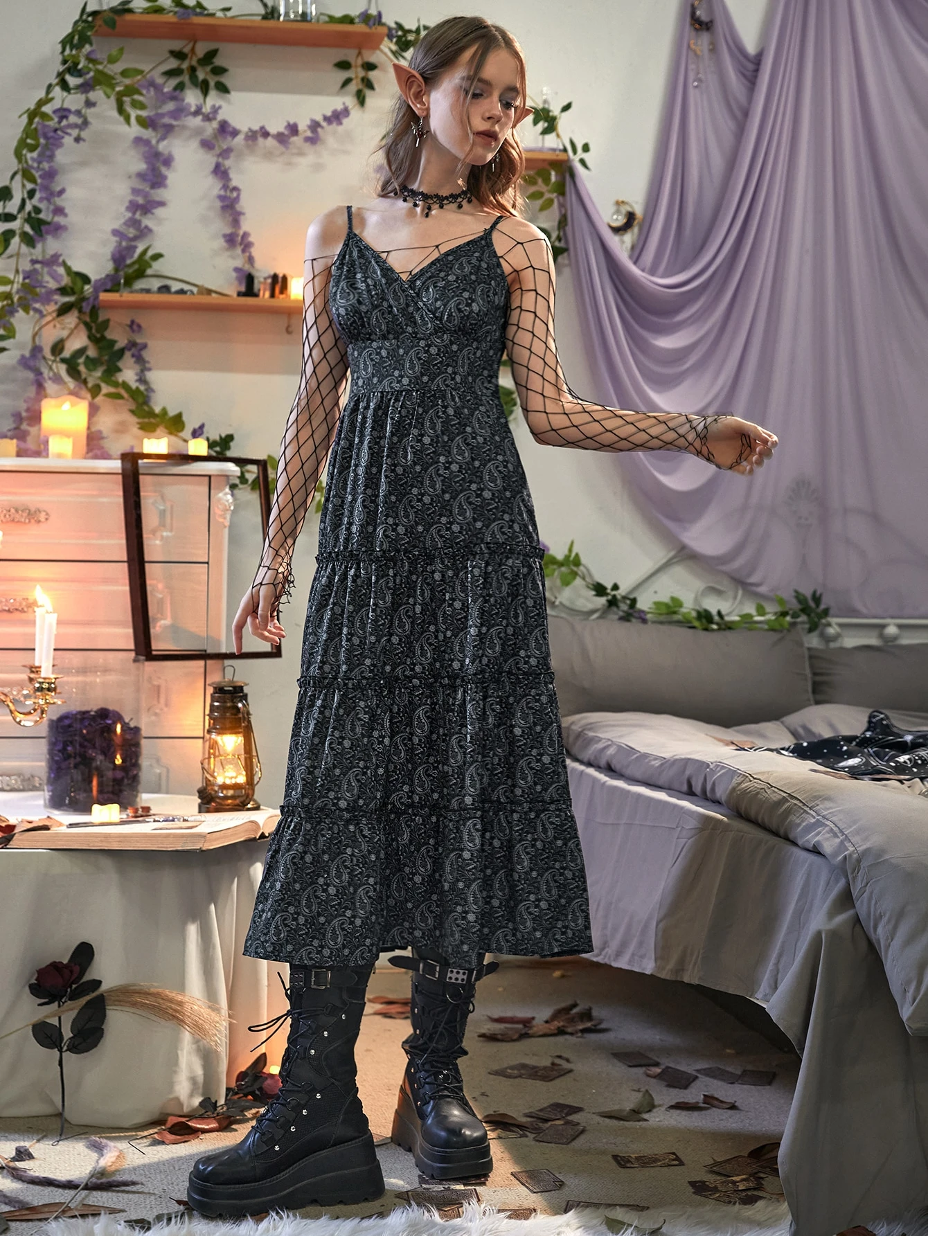 Paisley Print Frill Trim Cami Dress