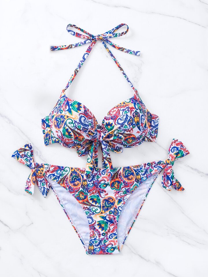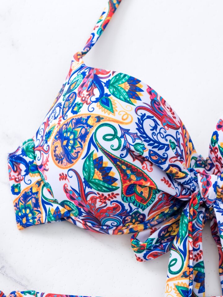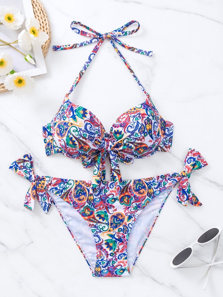 Paisley Print Underwire Tie Side Summer Beach Bikini Set