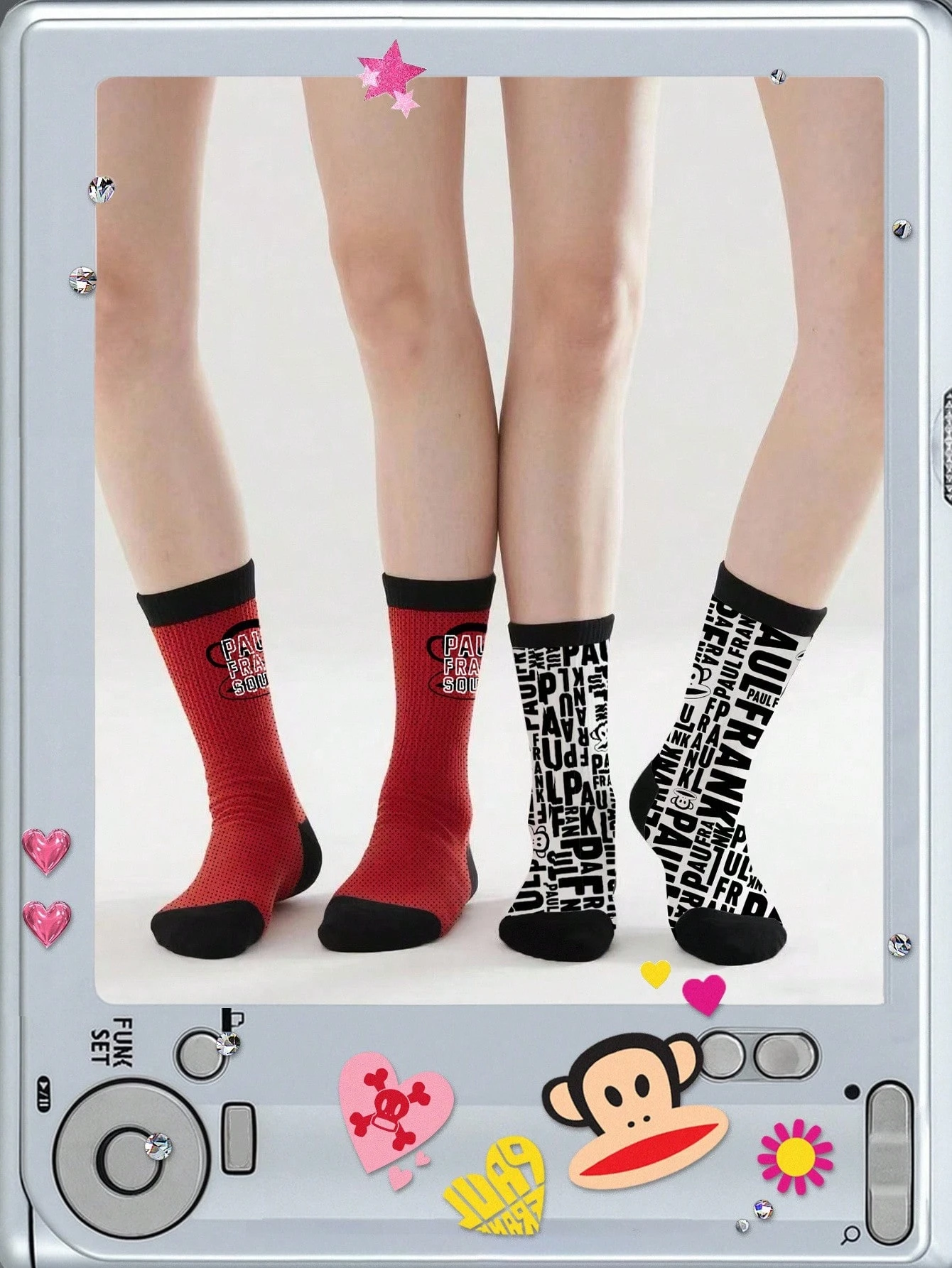 Paul Frank X ROMWE Letter Graphic Colorblock Comfortable Women Crew Socks