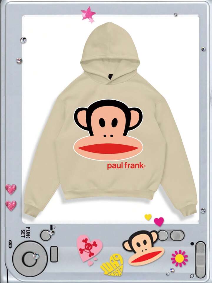 Paul Frank X ROMWE Men's Casual Monkey Print Loose Fit Hooded Sweatshirt, Autumn