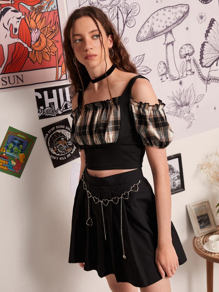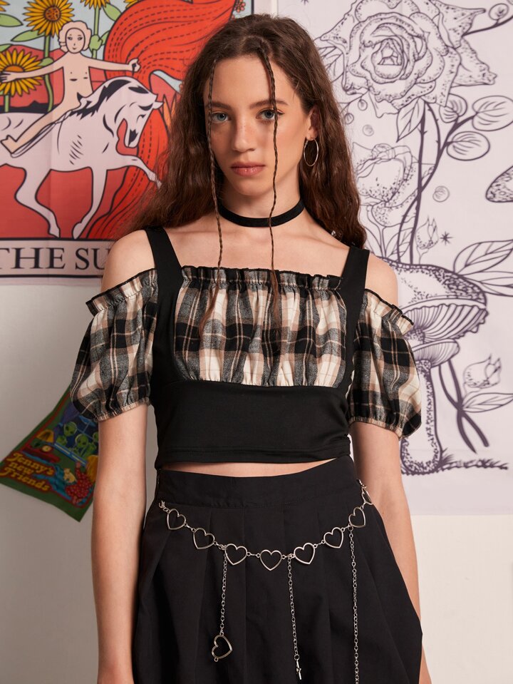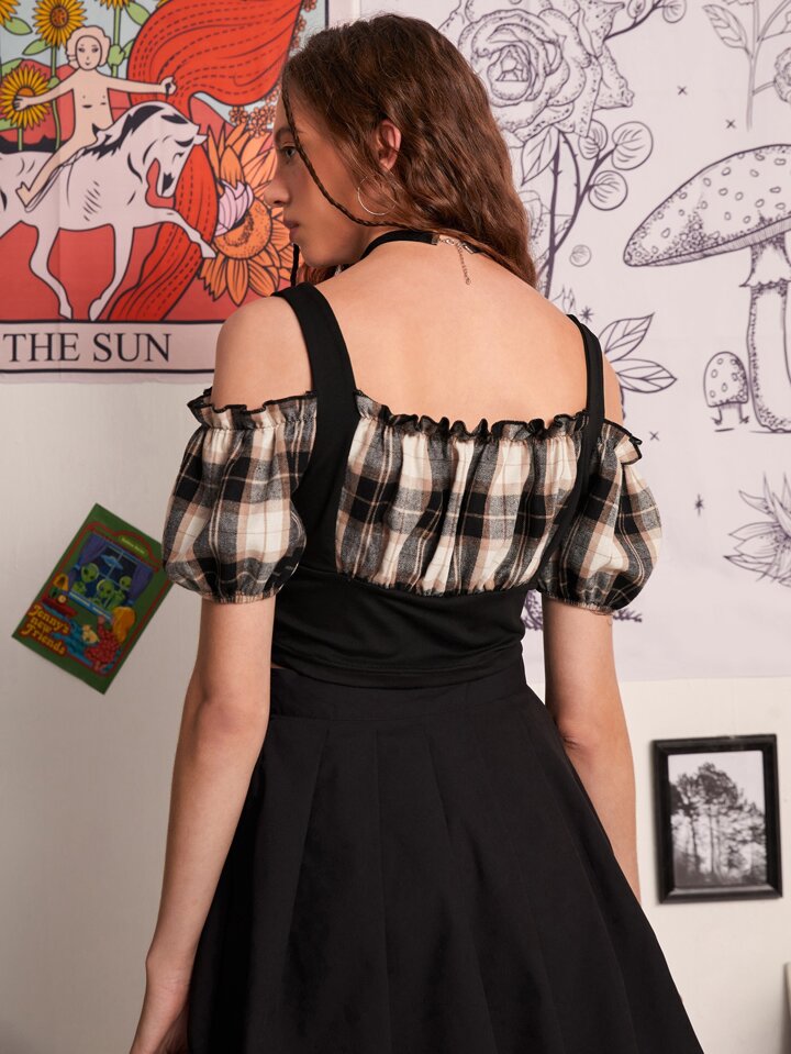 Plaid Frill Trim Blouse