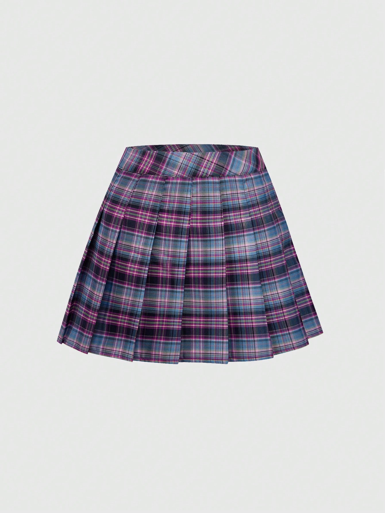 Plaid Pleated Mini Skirt, Minimalist & Fashionable, Suitable For Summer
