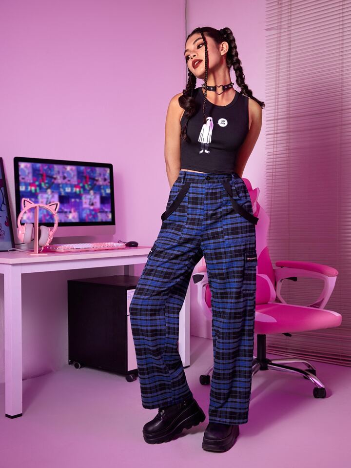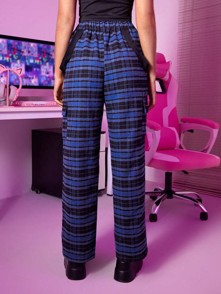 Plaid Print Flap Pocket Cargo Pants