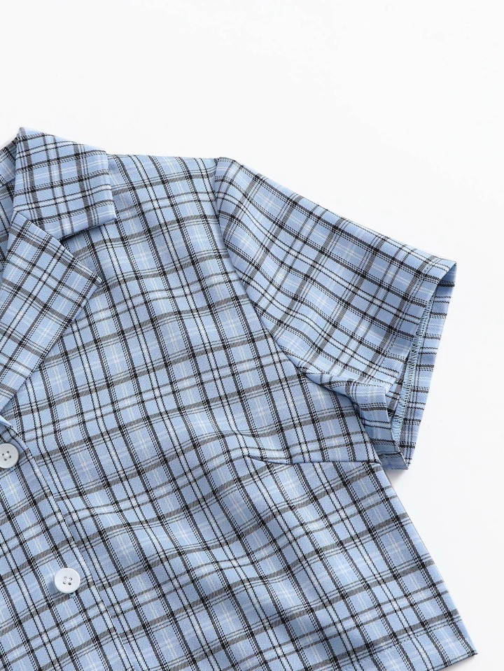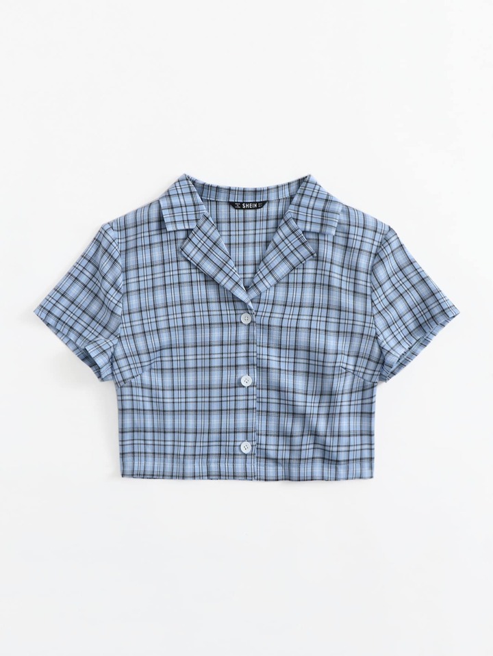 Plaid Print Lapel Neck Crop Blouse