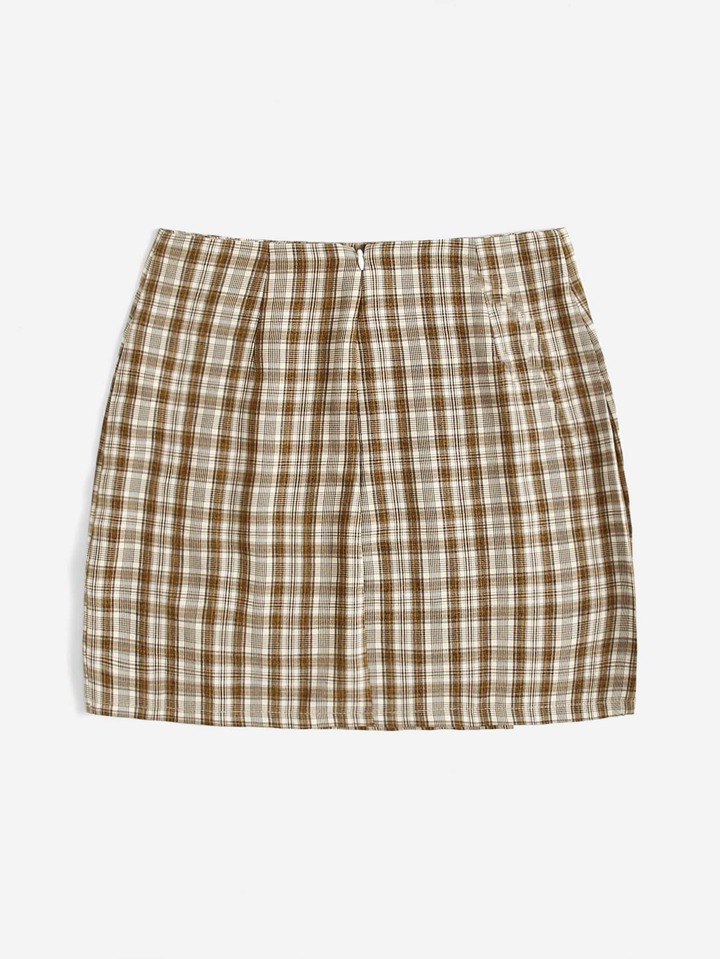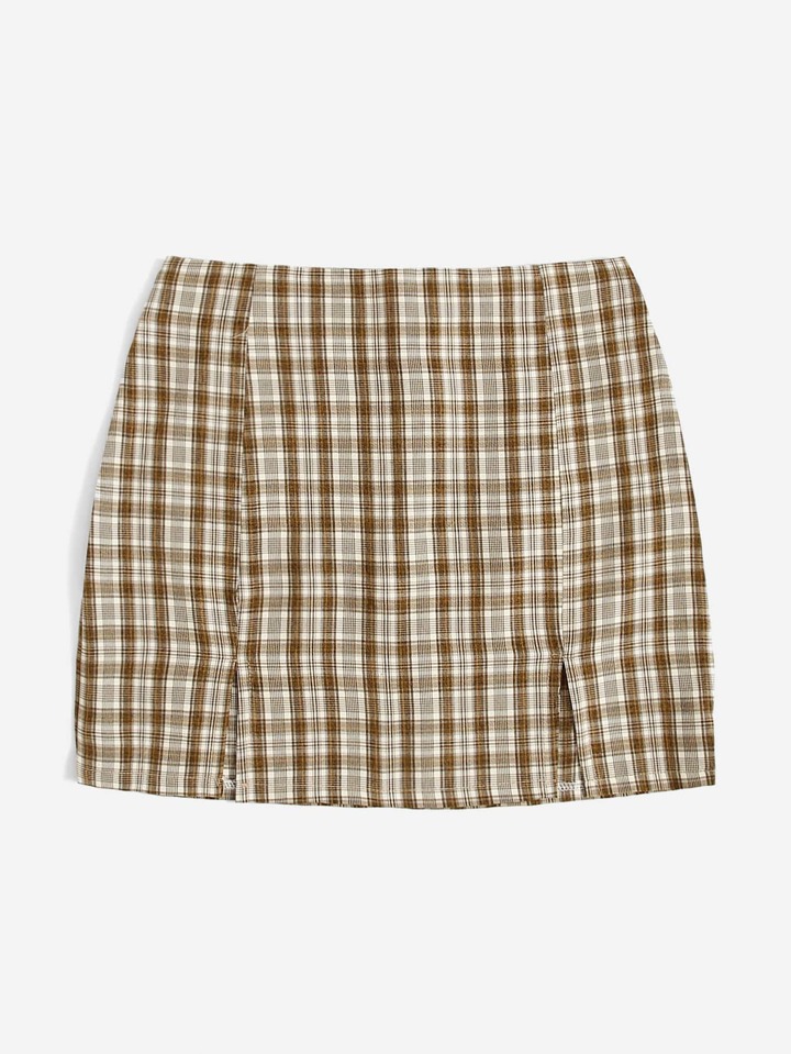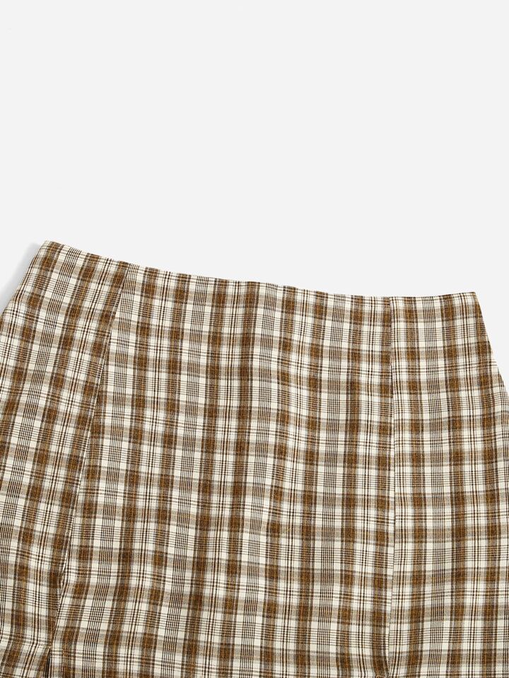 Plaid Split Skirt