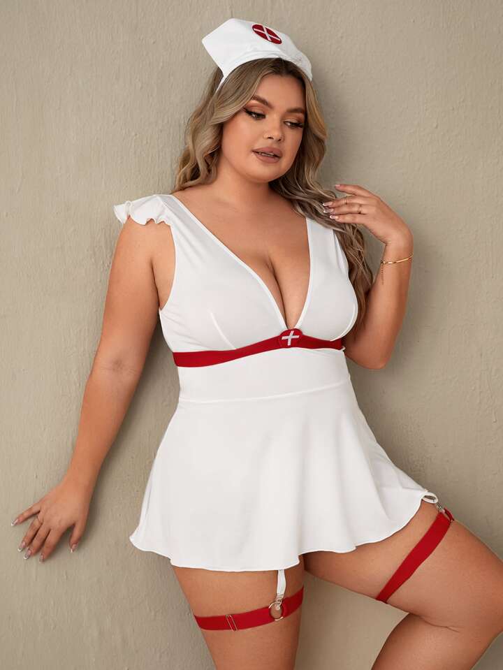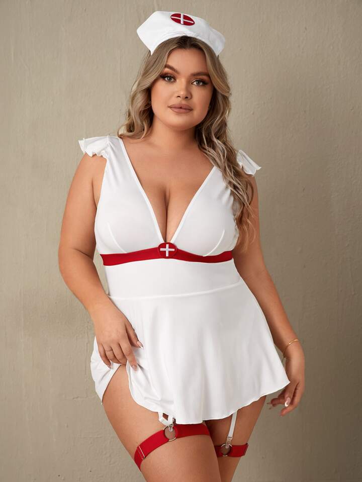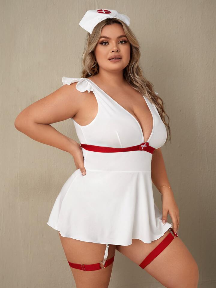 Plus 5pcs Ruffle Trim Nurse Costume Set
