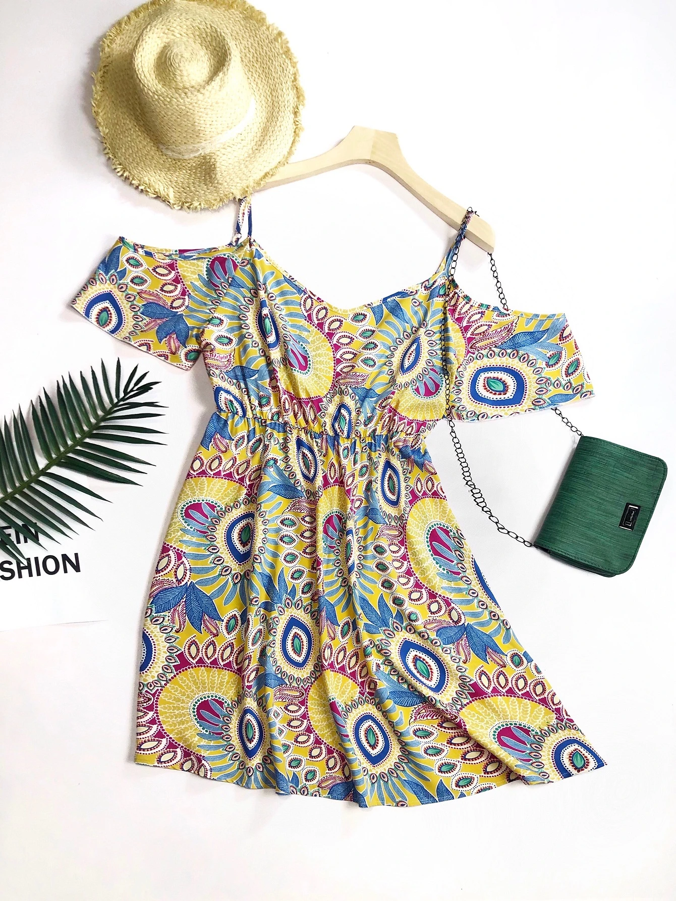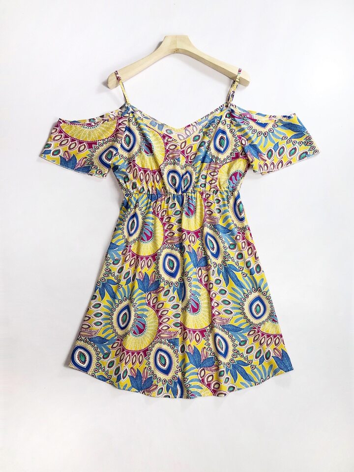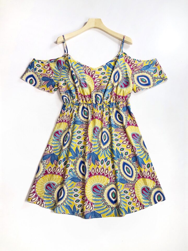 Plus Allover Print Cold Shoulder Dress