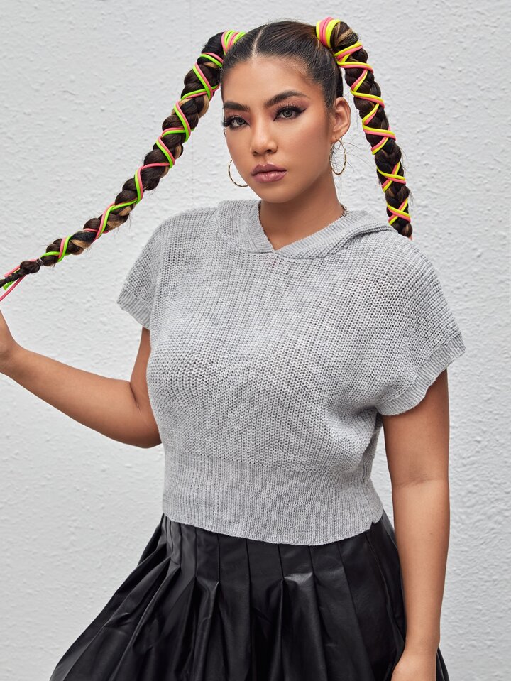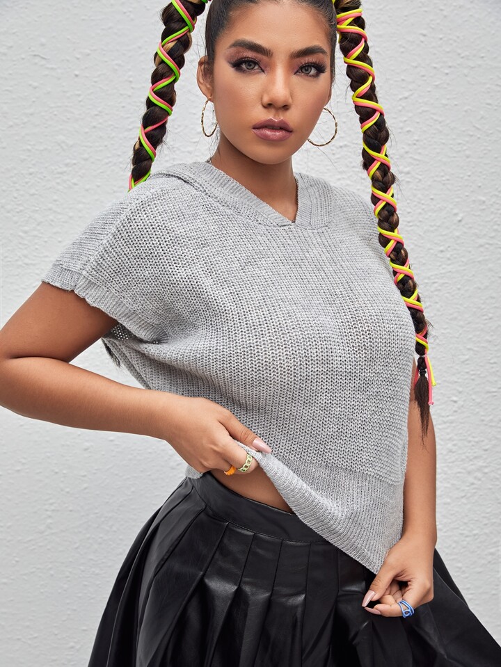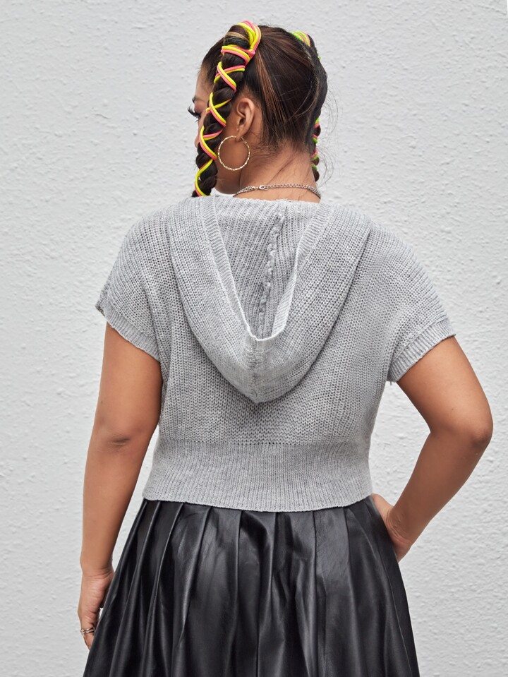 Plus Batwing Sleeve Hooded Knit Top
