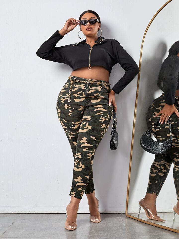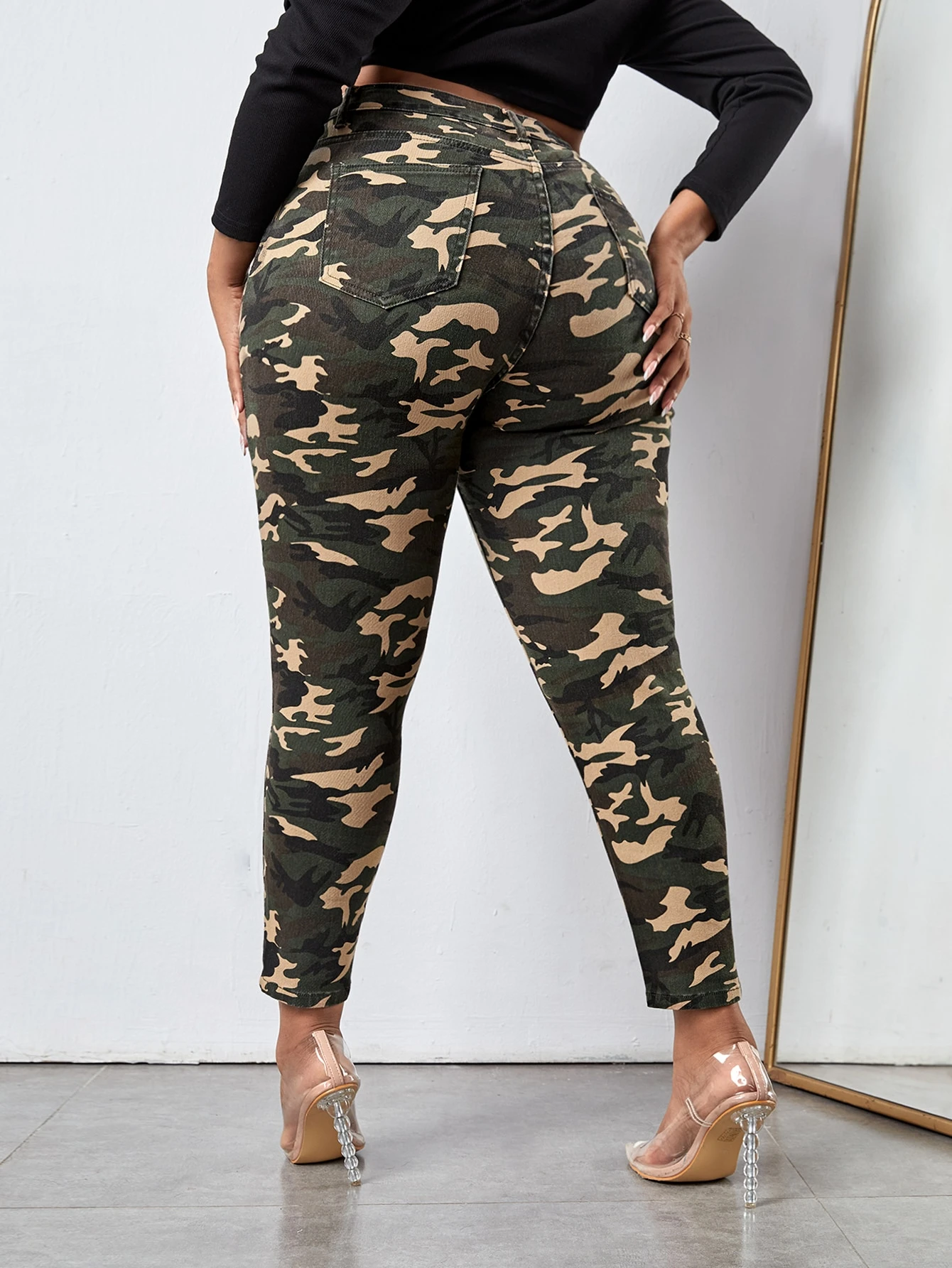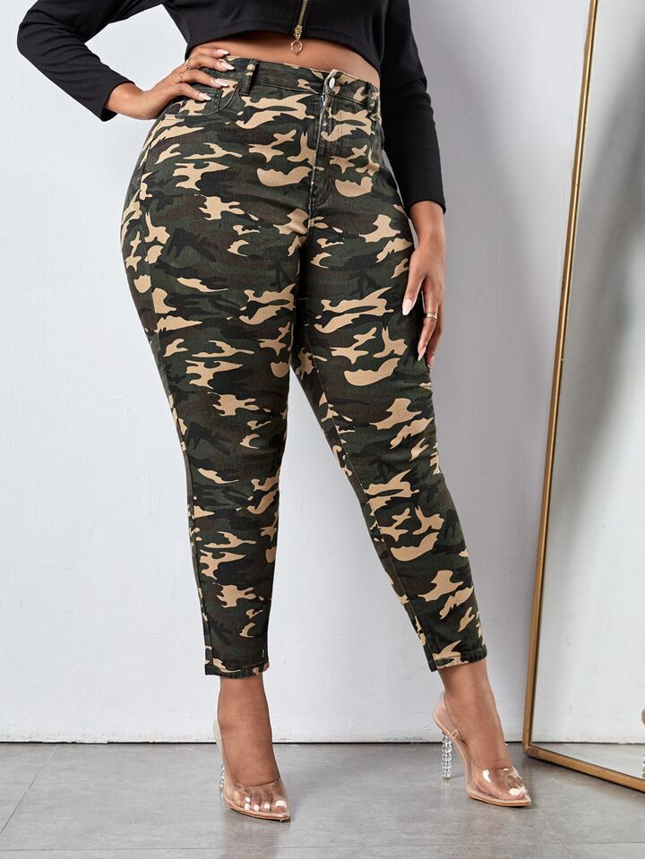 Plus Camo Print Slant Pocket Skinny Jeans Without Belt