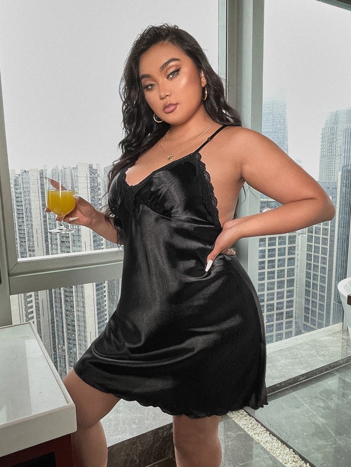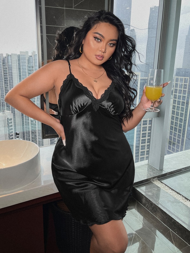 Plus Contrast Butterfly Lace Backless Satin Cami Nightdress