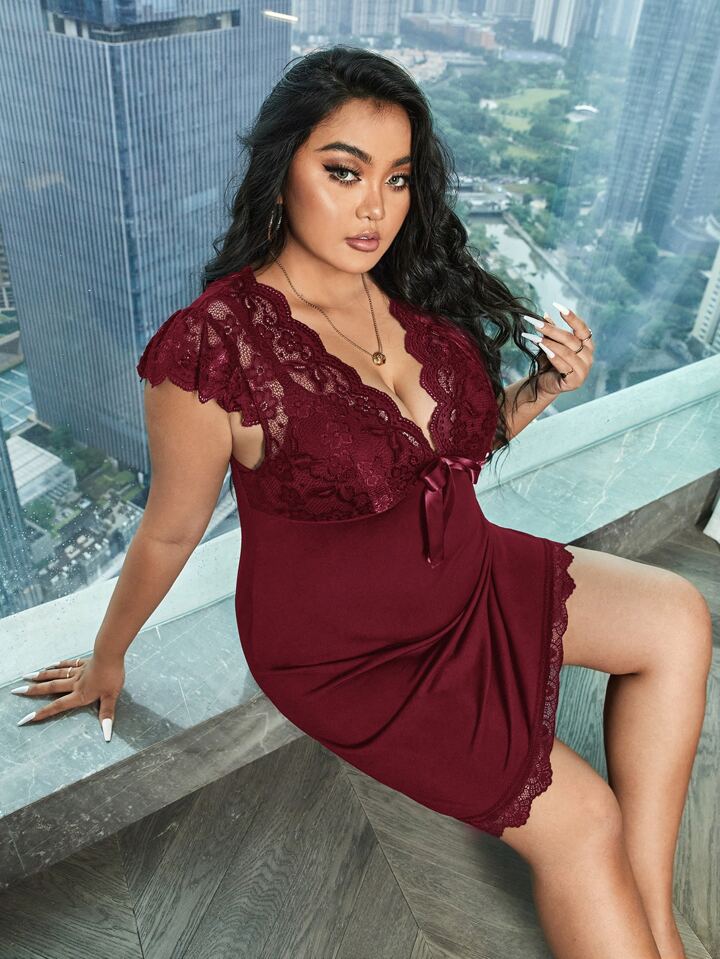 Plus Contrast Lace Bow Front Sleep Nightdress