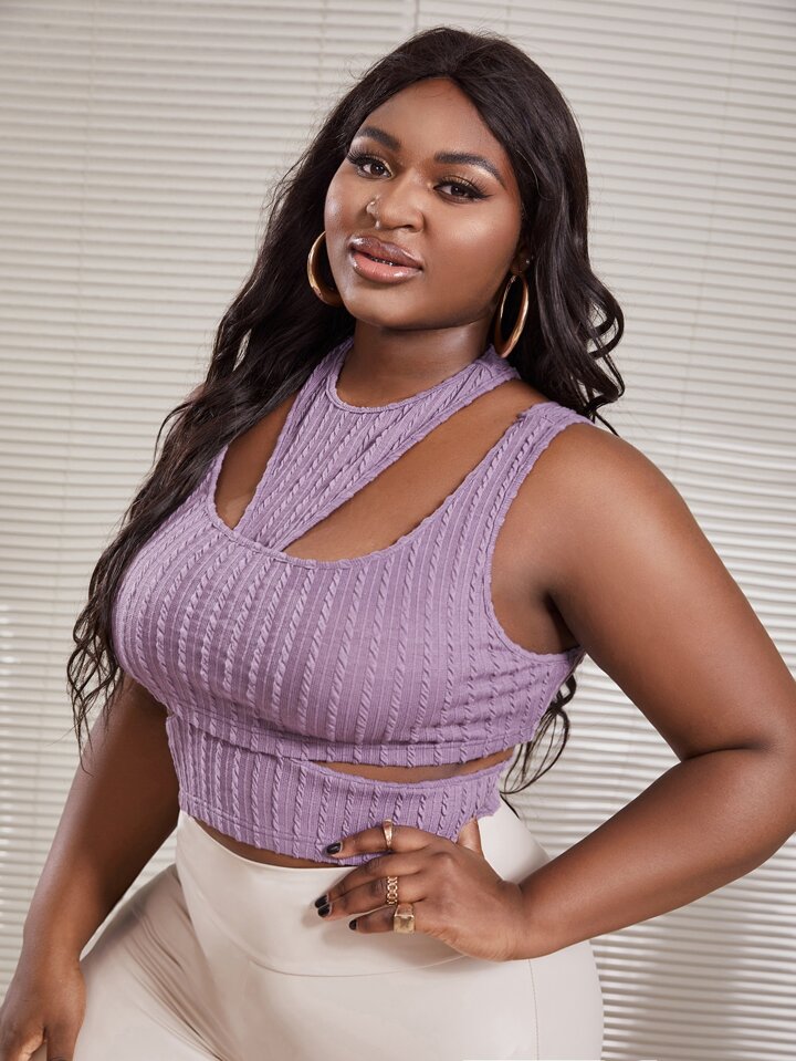 Plus Cutout Textured Knit Tank Top