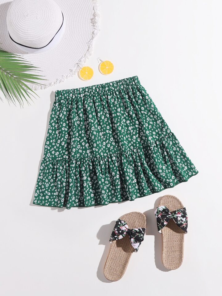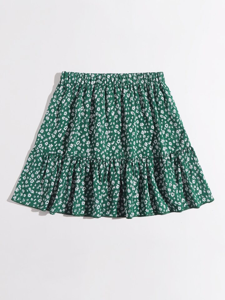 Plus Ditsy Floral Print Ruffle Hem Skirt