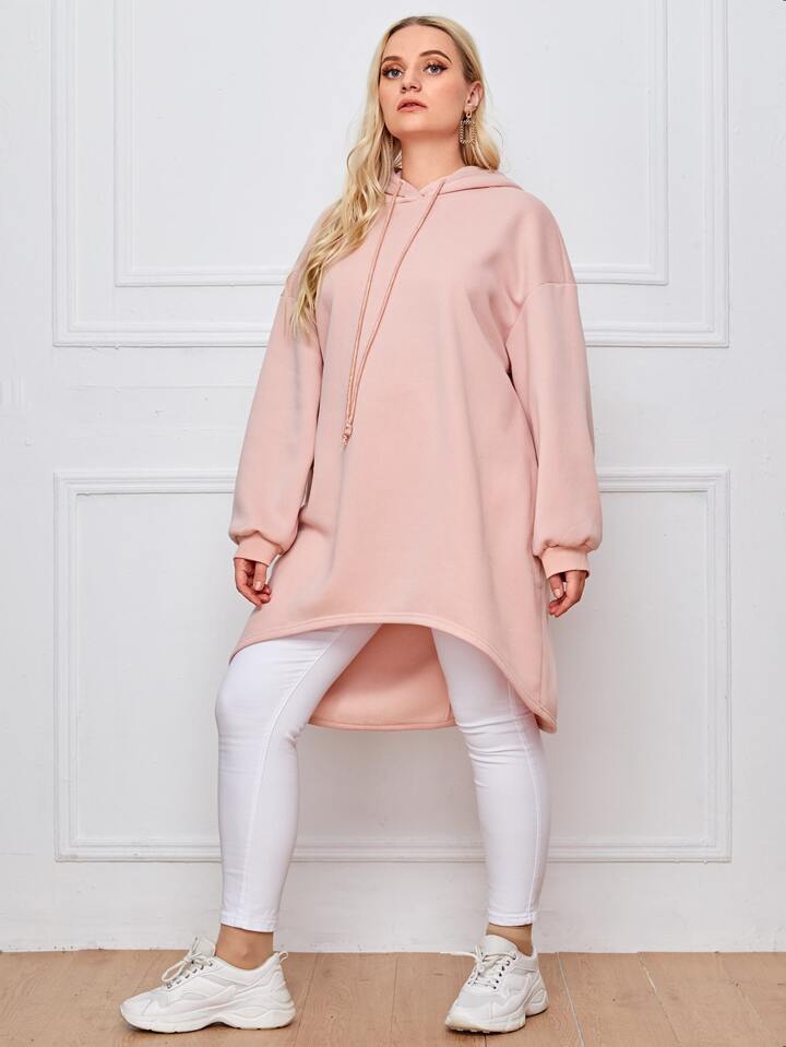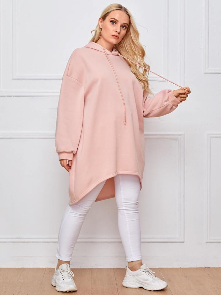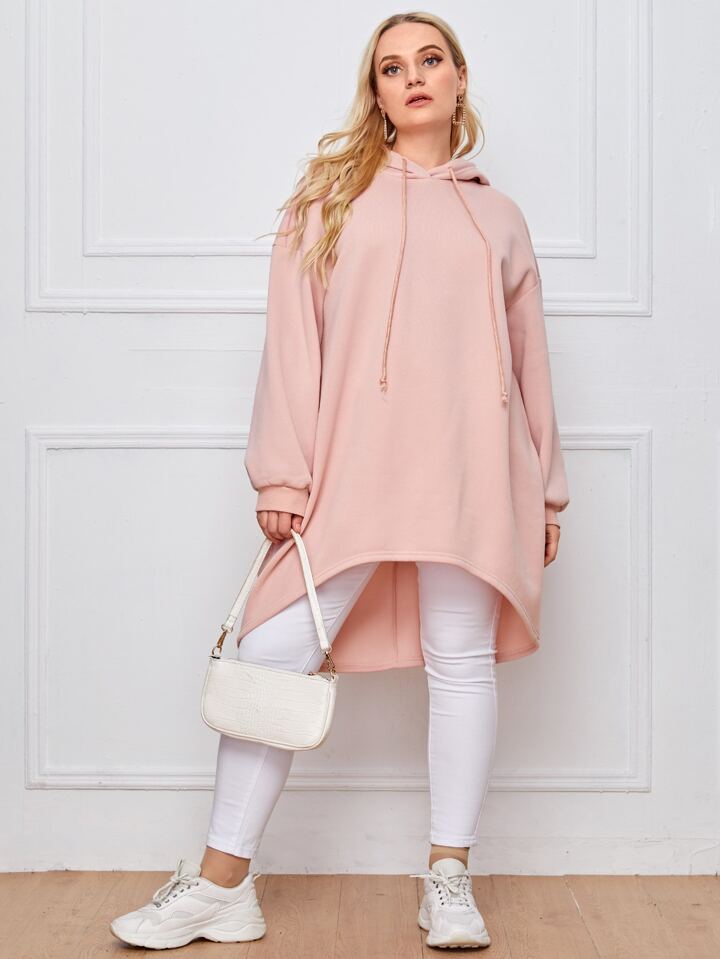 Plus Drop Shoulder High-low Hem Drawstring Hoodie