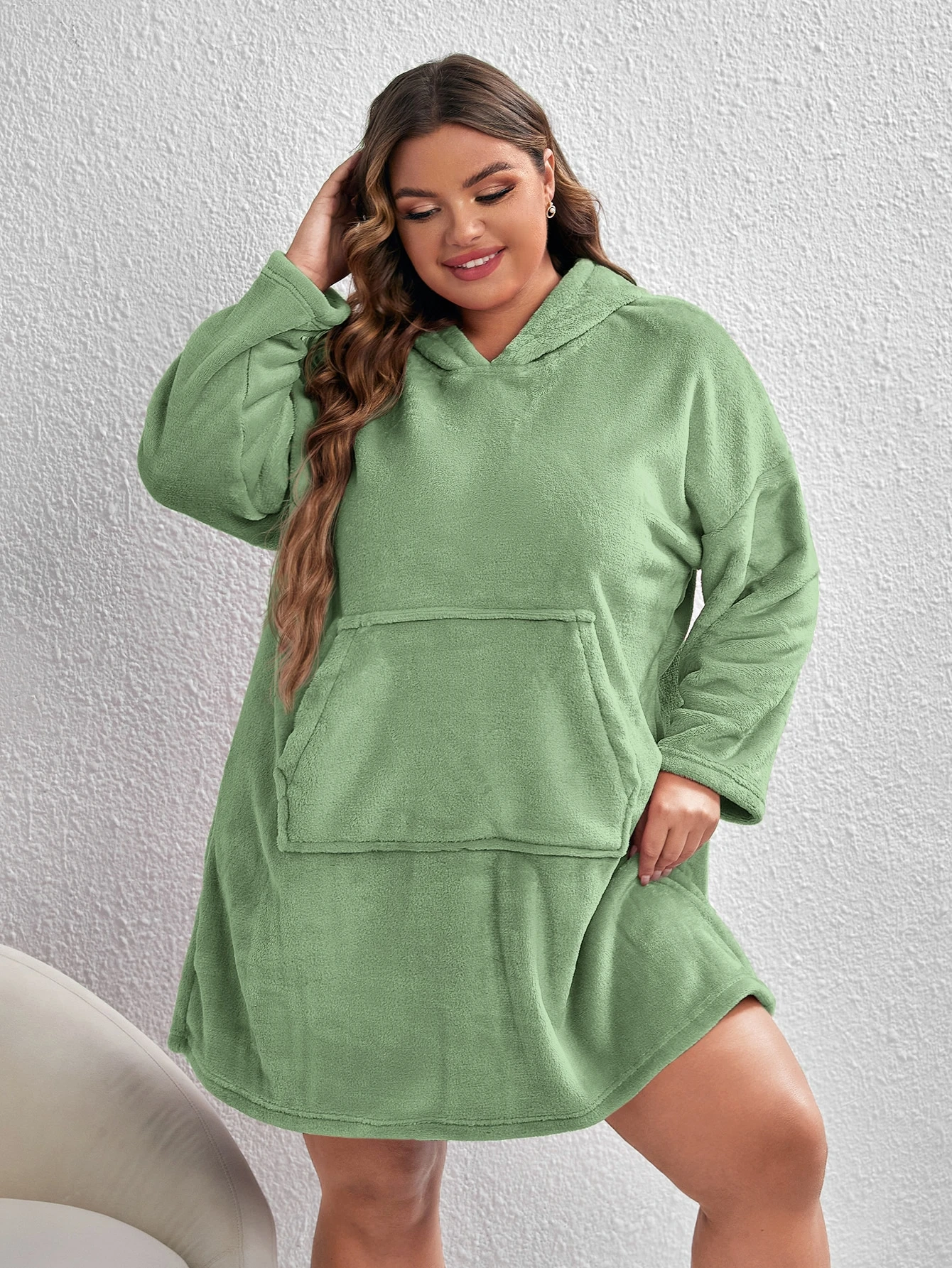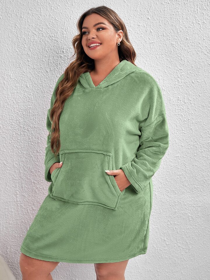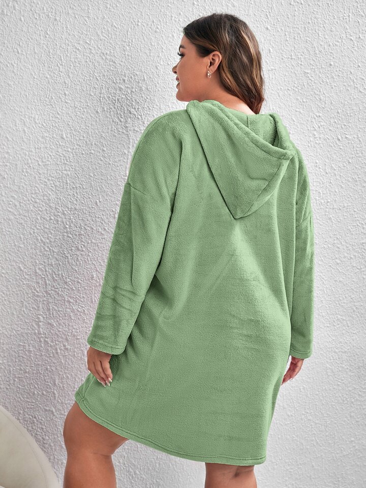 Plus Drop Shoulder Kangaroo Pocket Hooded Flannelette Night Dress