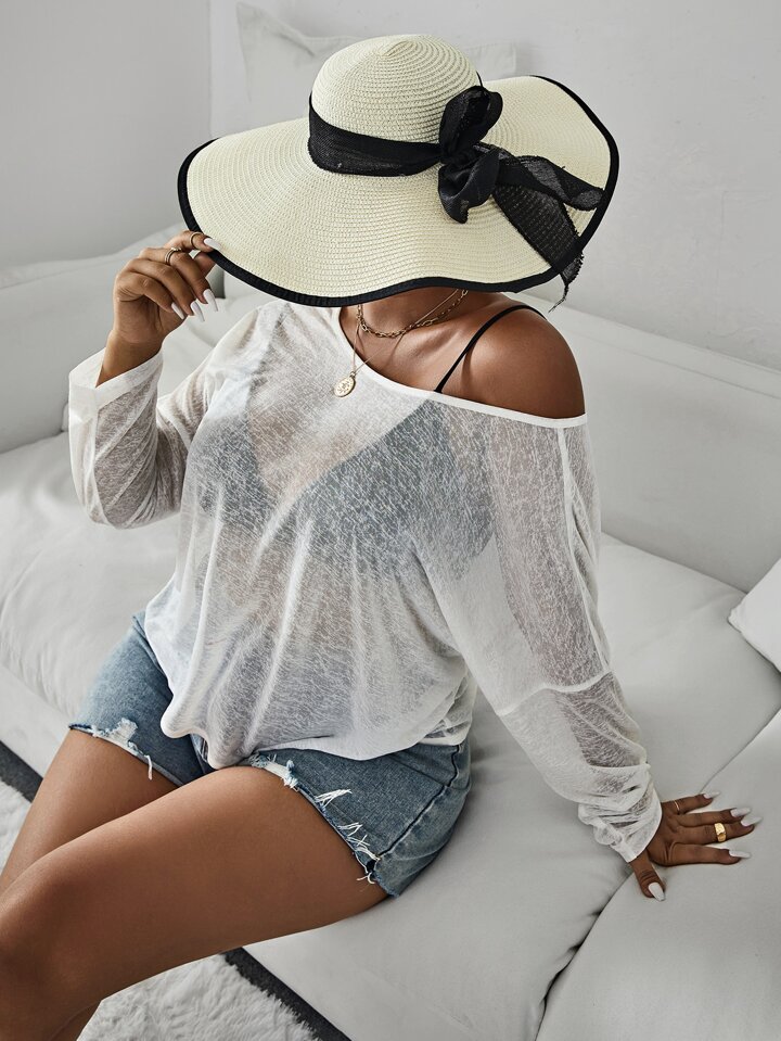 Plus Drop Shoulder Mesh Cover Up Without Bikini, For Summer Beach Vacation