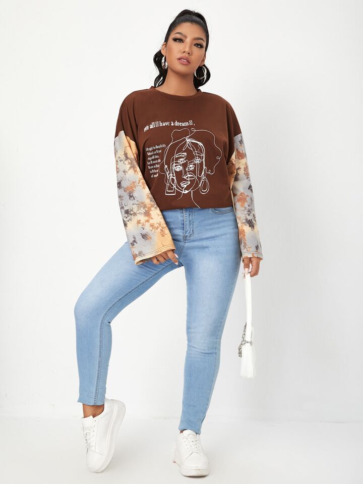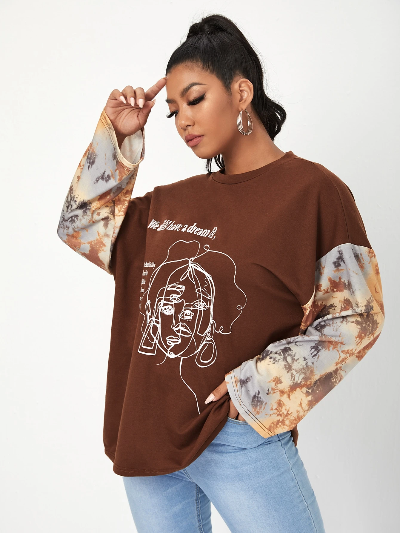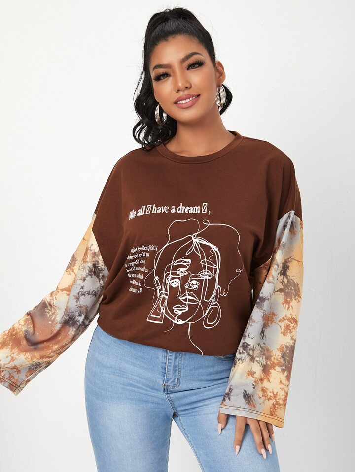 Plus Drop Shoulder Tie Dye Sleeve Figure Graphic Tee